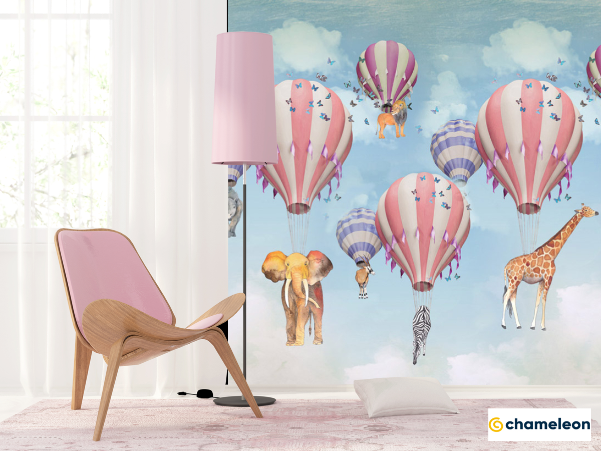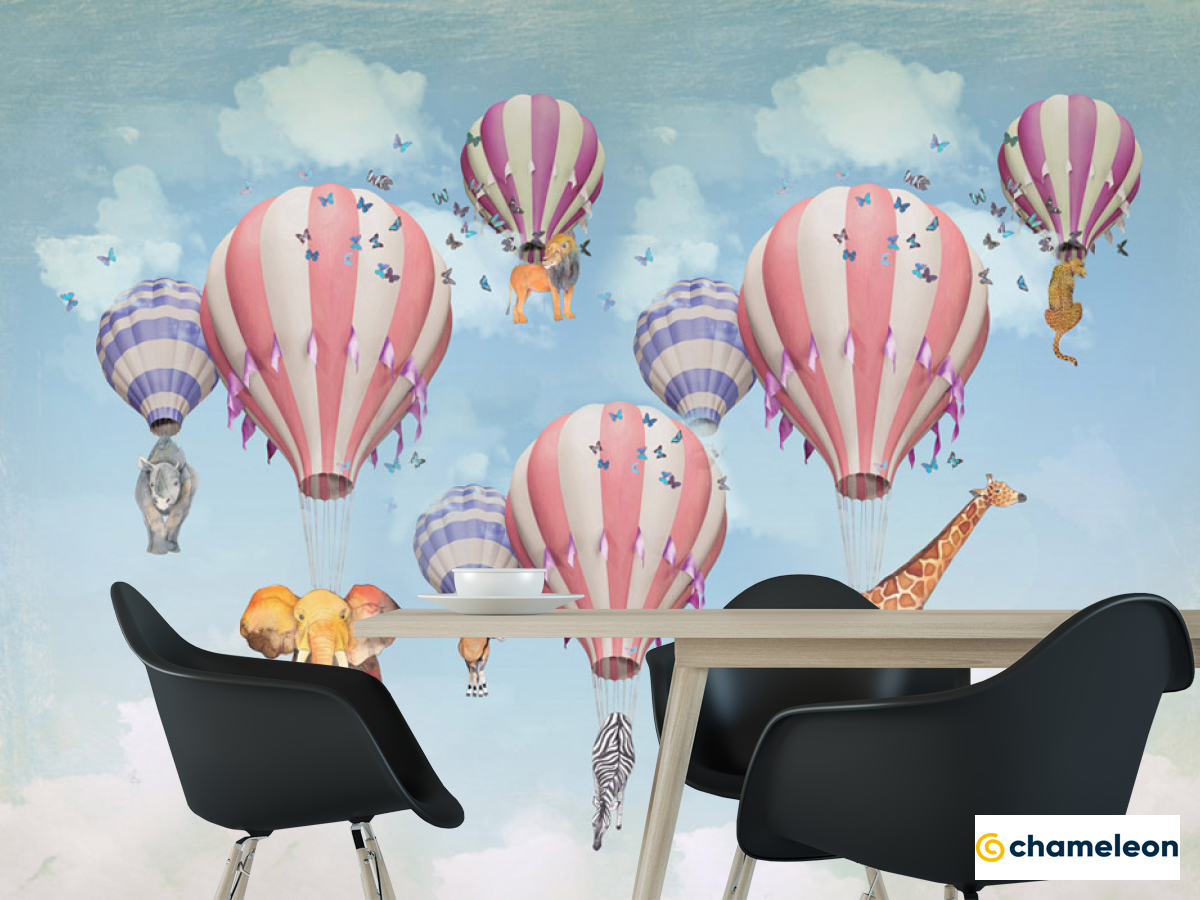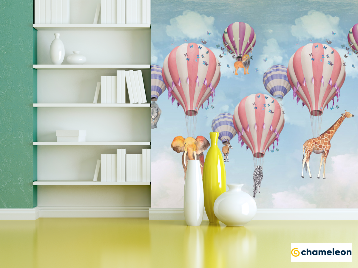 Фотошпалери «Фотошпалери Повітряні кулі з тваринами», (арт. 22297) - купити в інтернет-магазині «Будинок Фотошпалер» Хамелеон