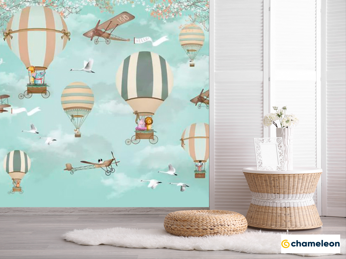 Фотошпалери повітряні кулі на бірюзовому тлі