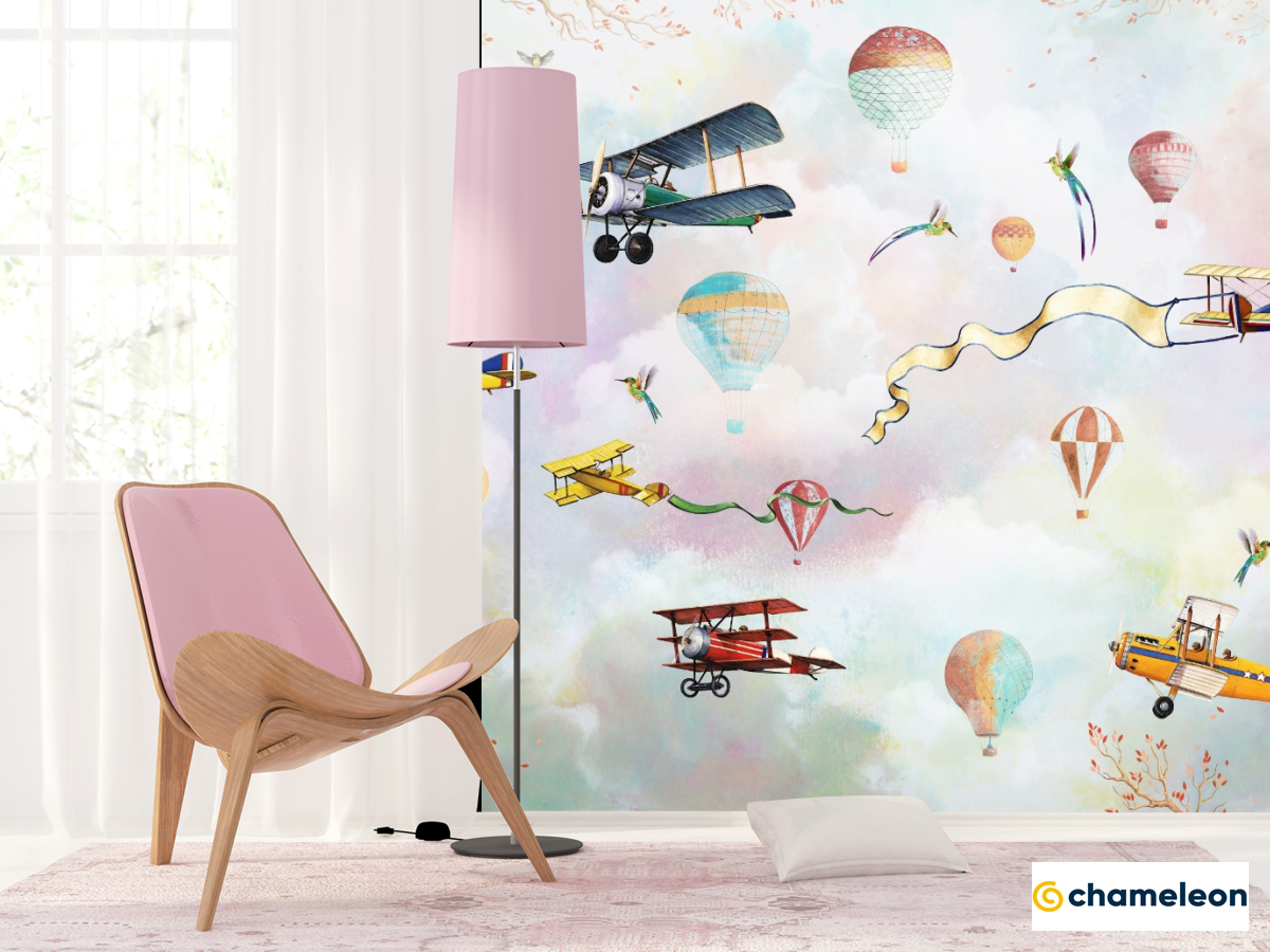 Фотошпалери «Фотошпалери Дитячий летить транспорт», (арт. 22353) - купити в інтернет-магазині «Будинок Фотошпалер» Хамелеон