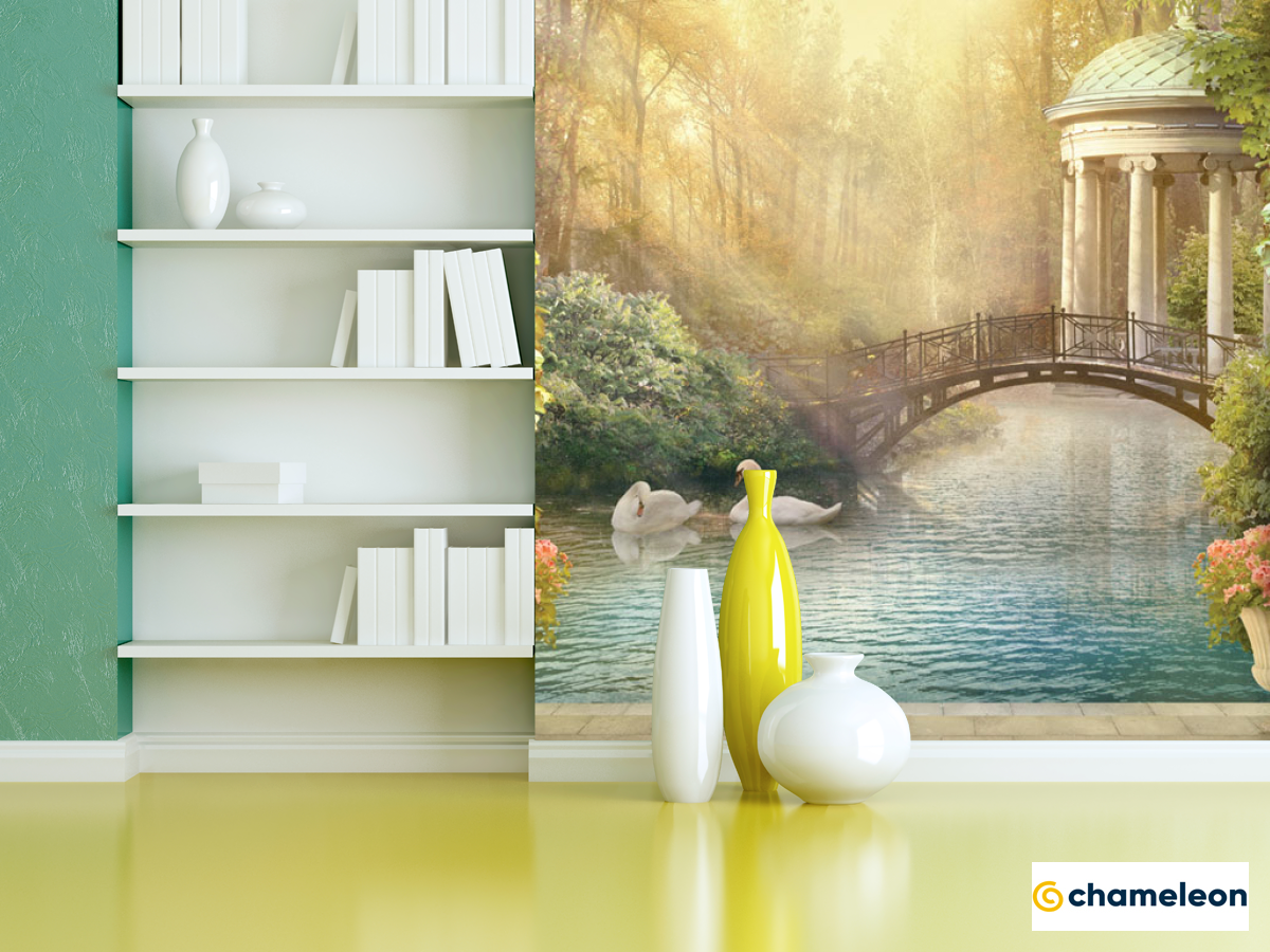 Фотошпалери «Фотошпалери Лебеді на ставку», (арт. 22384) - купити в інтернет-магазині «Будинок Фотошпалер» Хамелеон