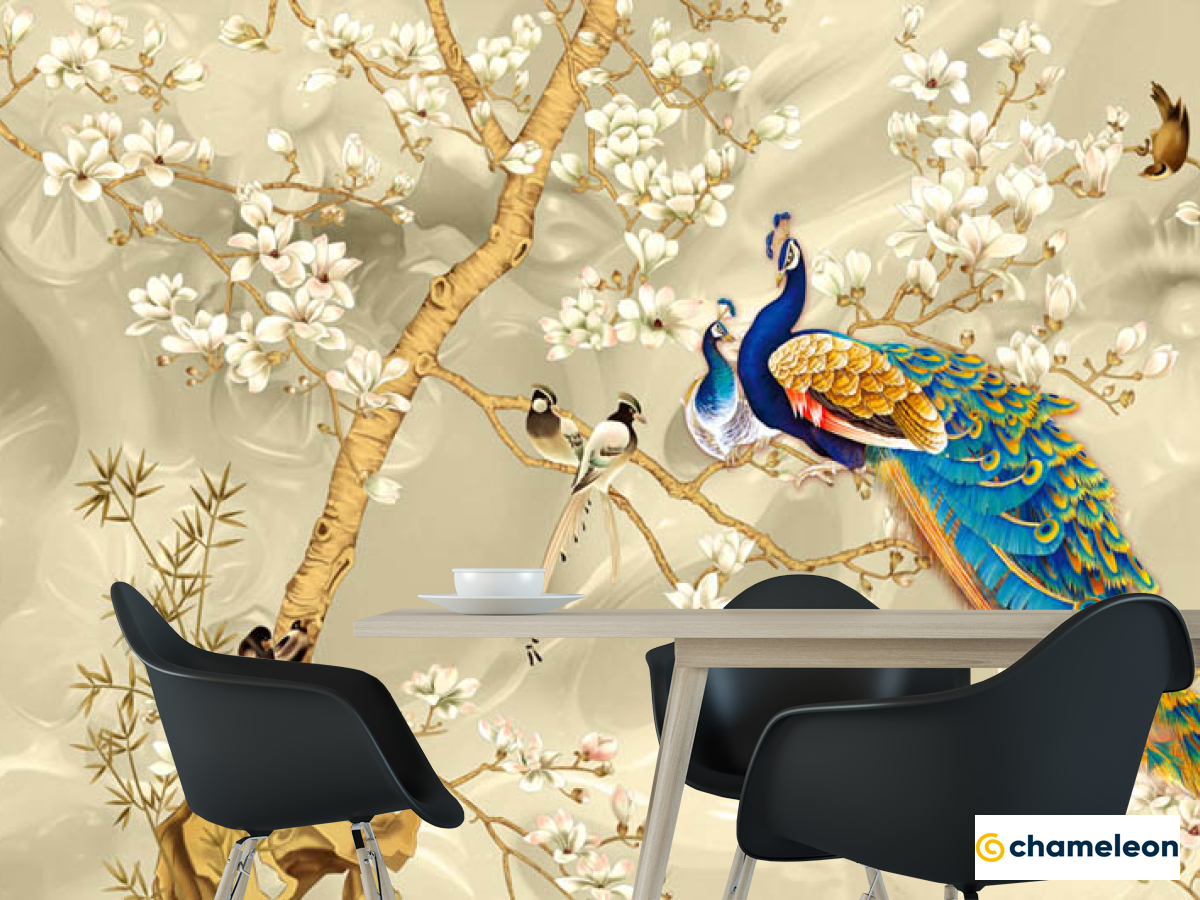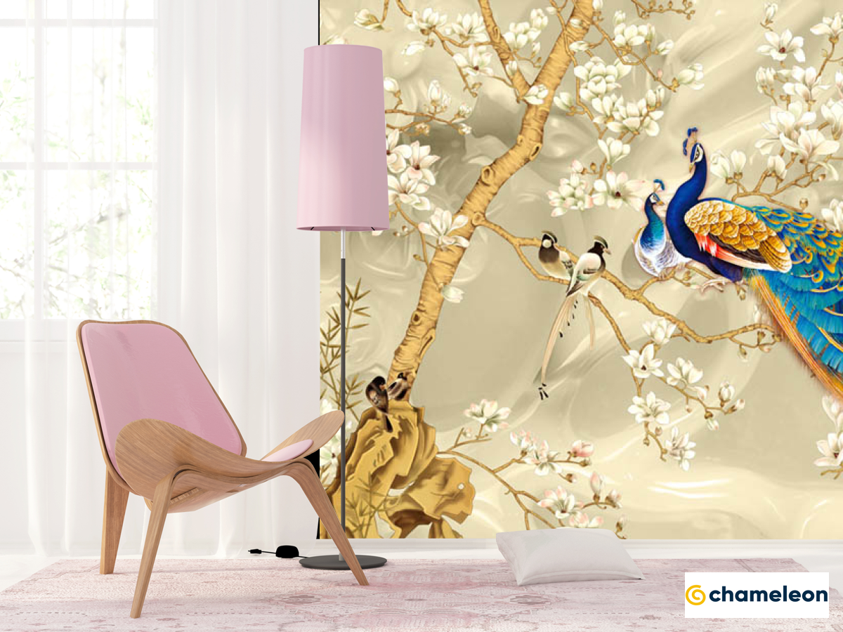 Фотошпалери «Фотошпалери Гілки магнолії і павич», (арт. 22446) - купити в інтернет-магазині «Будинок Фотошпалер» Хамелеон
