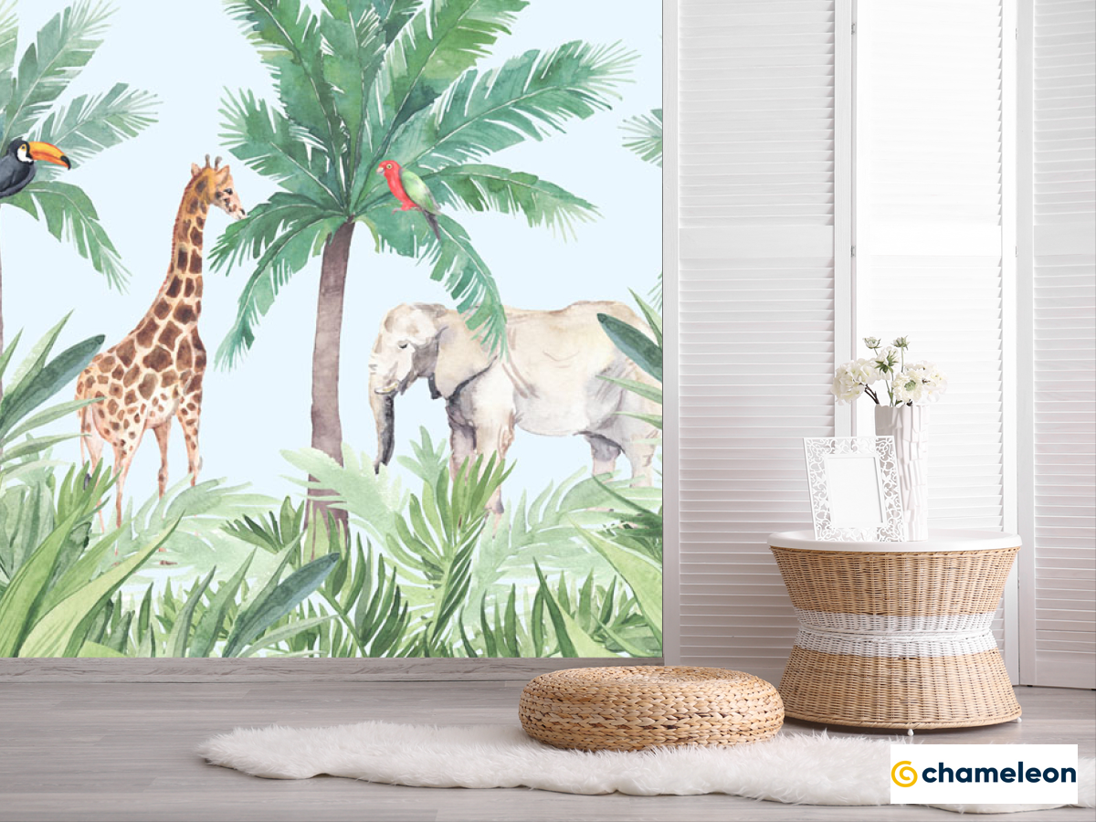 Фотошпалери «Фотошпалери Тропічні дитячі джунглі», (арт. 22552) - купити в інтернет-магазині «Будинок Фотошпалер» Хамелеон