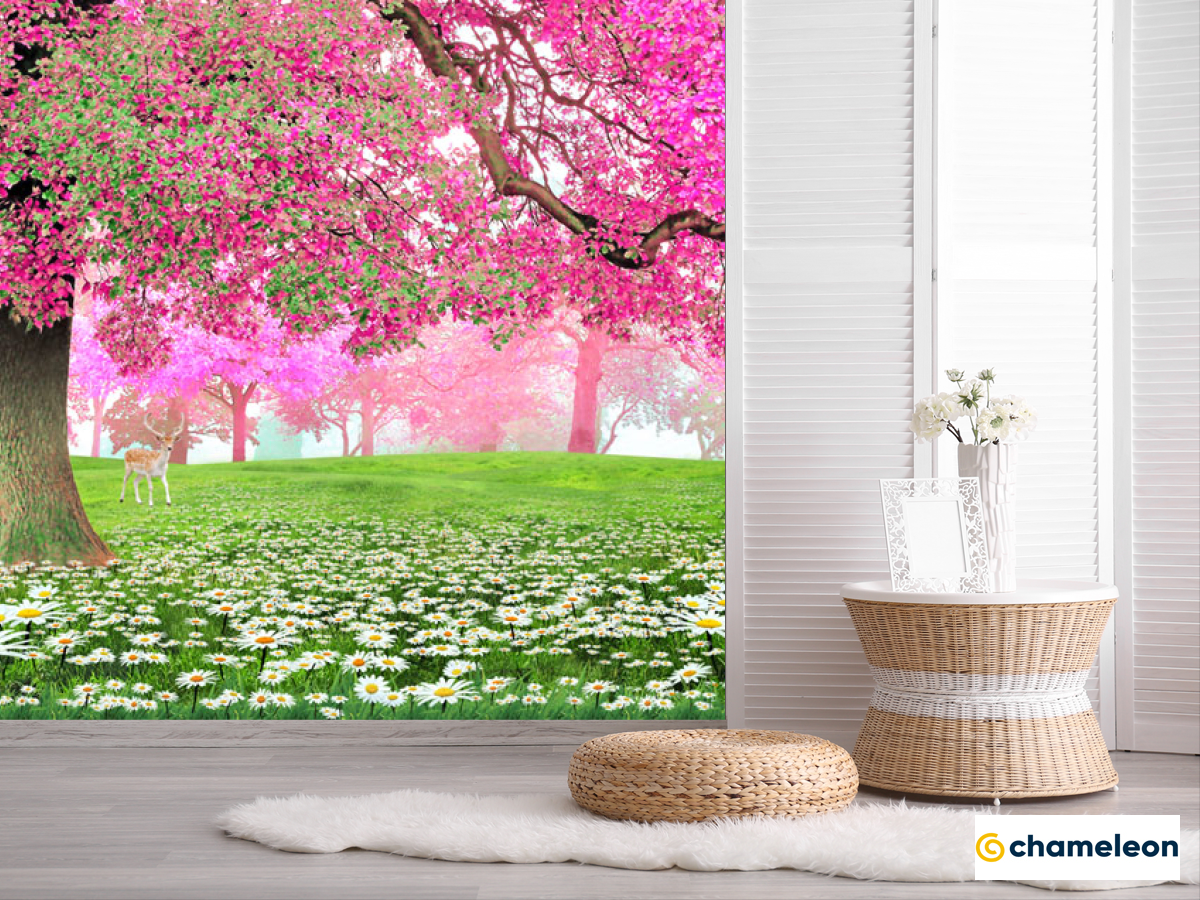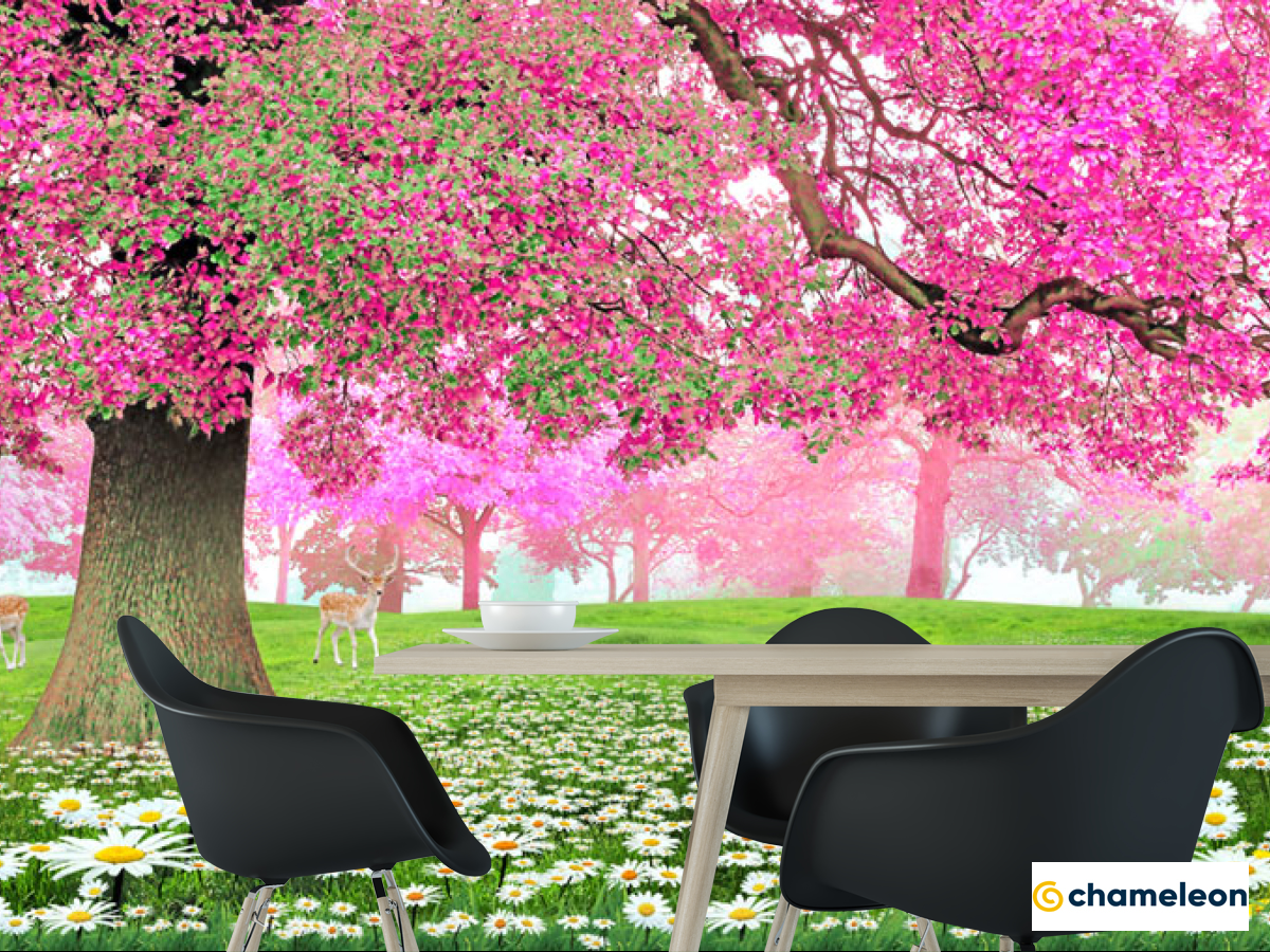 Фотошпалери «Фотошпалери Рожеве дерево та олень», (арт. 22916) - купити в інтернет-магазині «Будинок Фотошпалер» Хамелеон