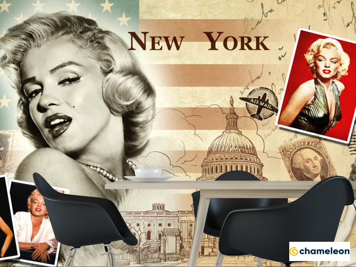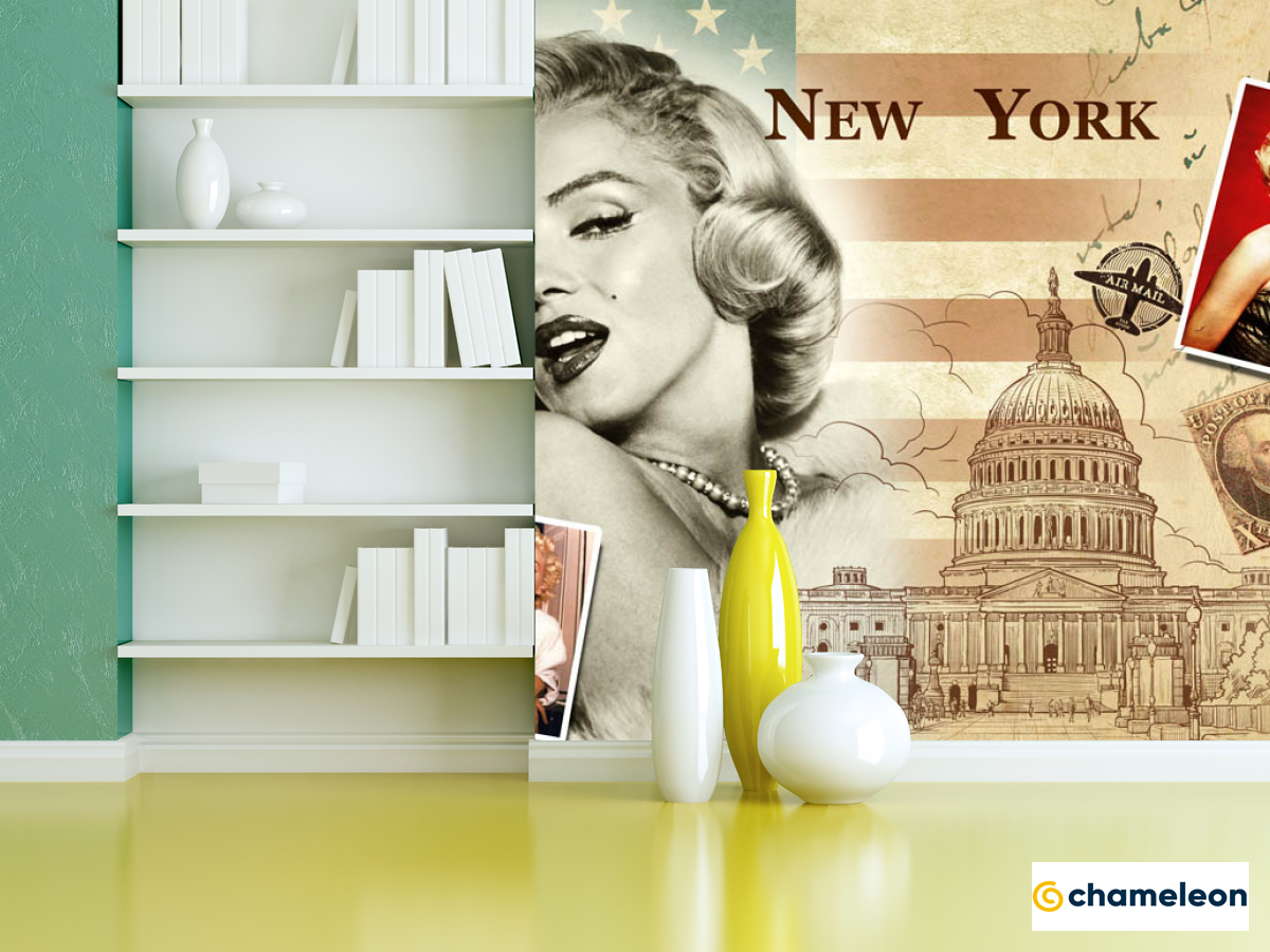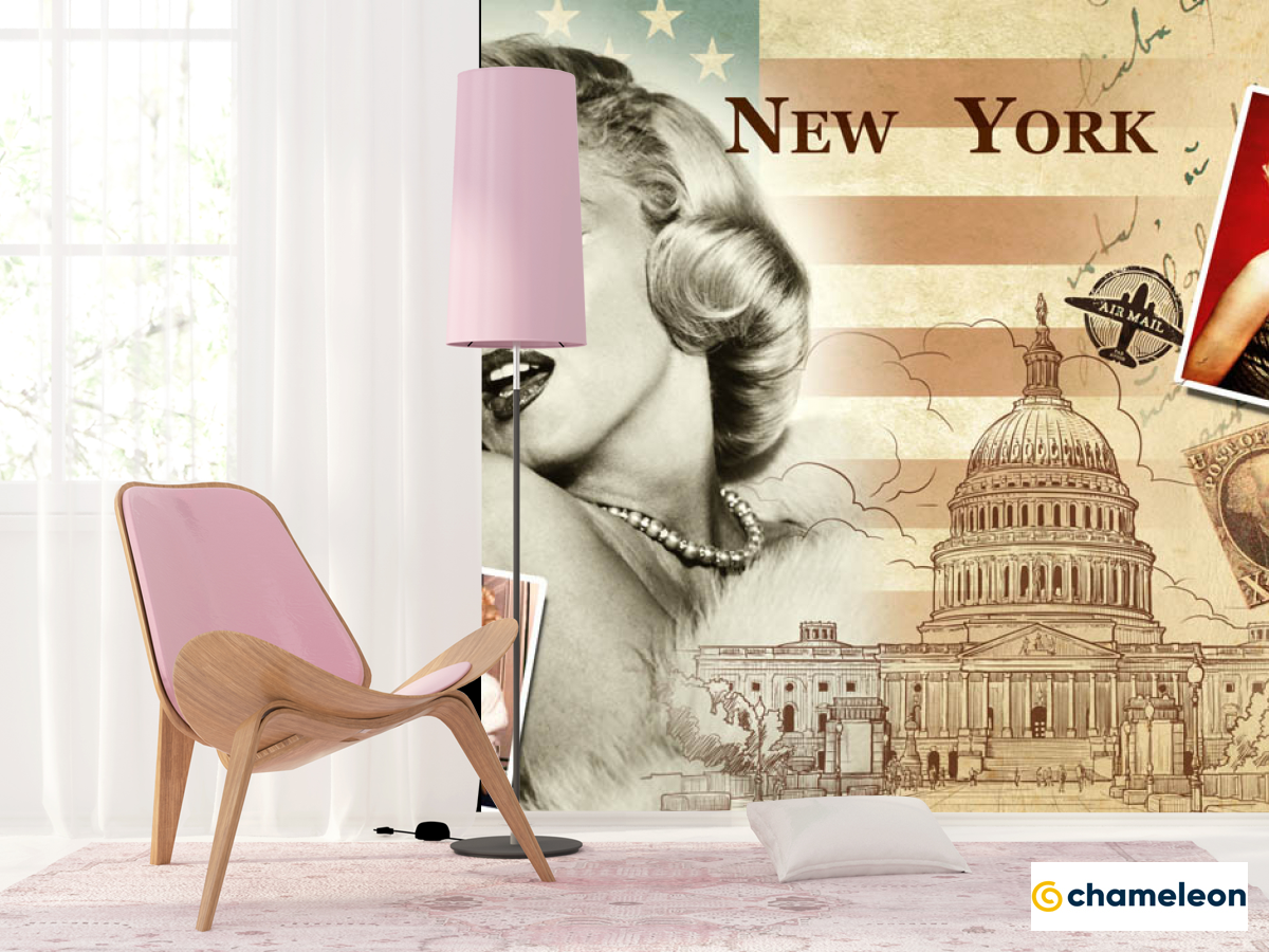 Фотошпалери «Фотошпалери Вінтажний принт з Монро», (арт. 22973) - купити в інтернет-магазині «Будинок Фотошпалер» Хамелеон