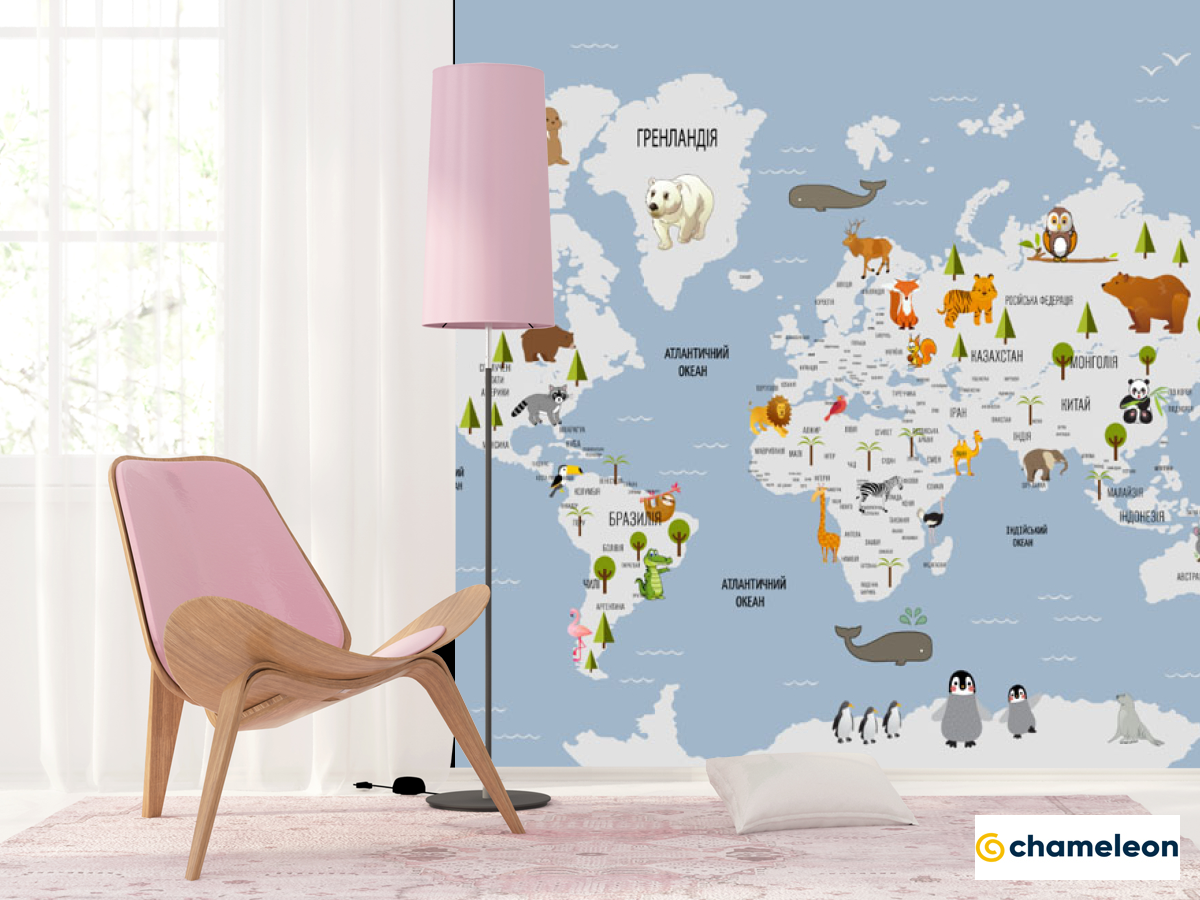 Фотошпалери блакитна карта для дівчинки українською