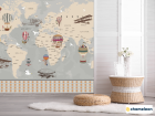 Фотошпалери карта дитяча з літаками і шарами по англійськи