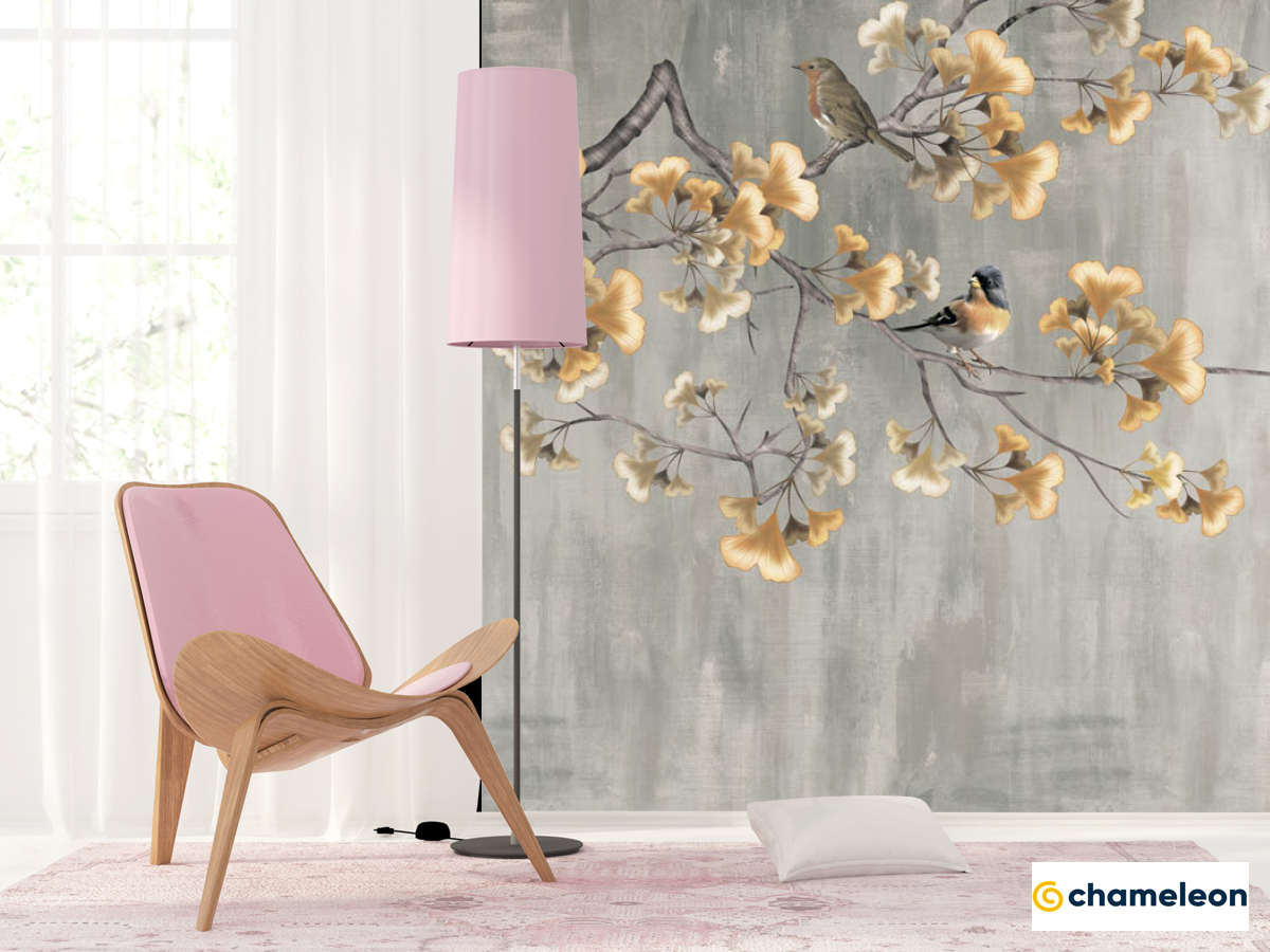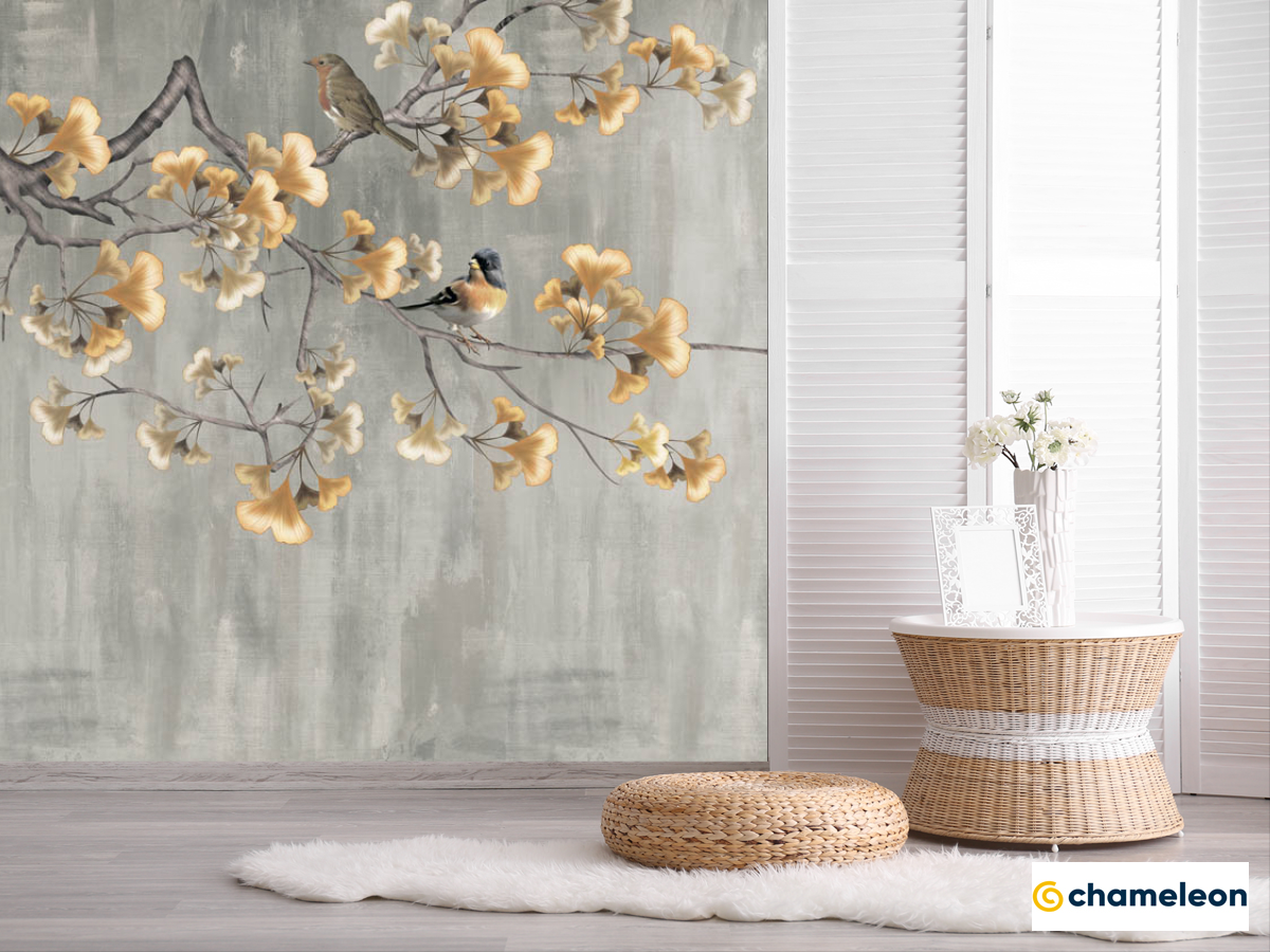 Фотошпалери «Фотошпалери Гінкго та птиці», (арт. 23063) - купити в інтернет-магазині «Будинок Фотошпалер» Хамелеон