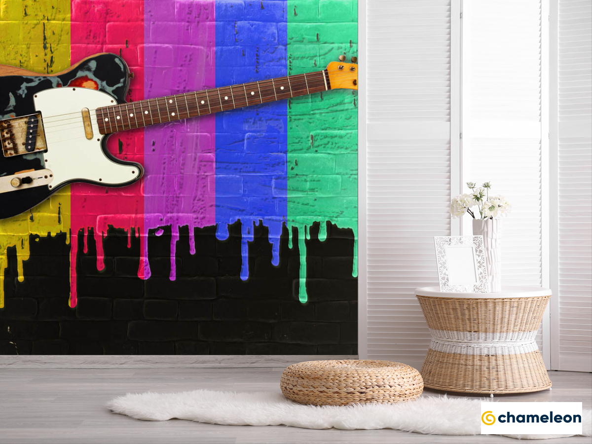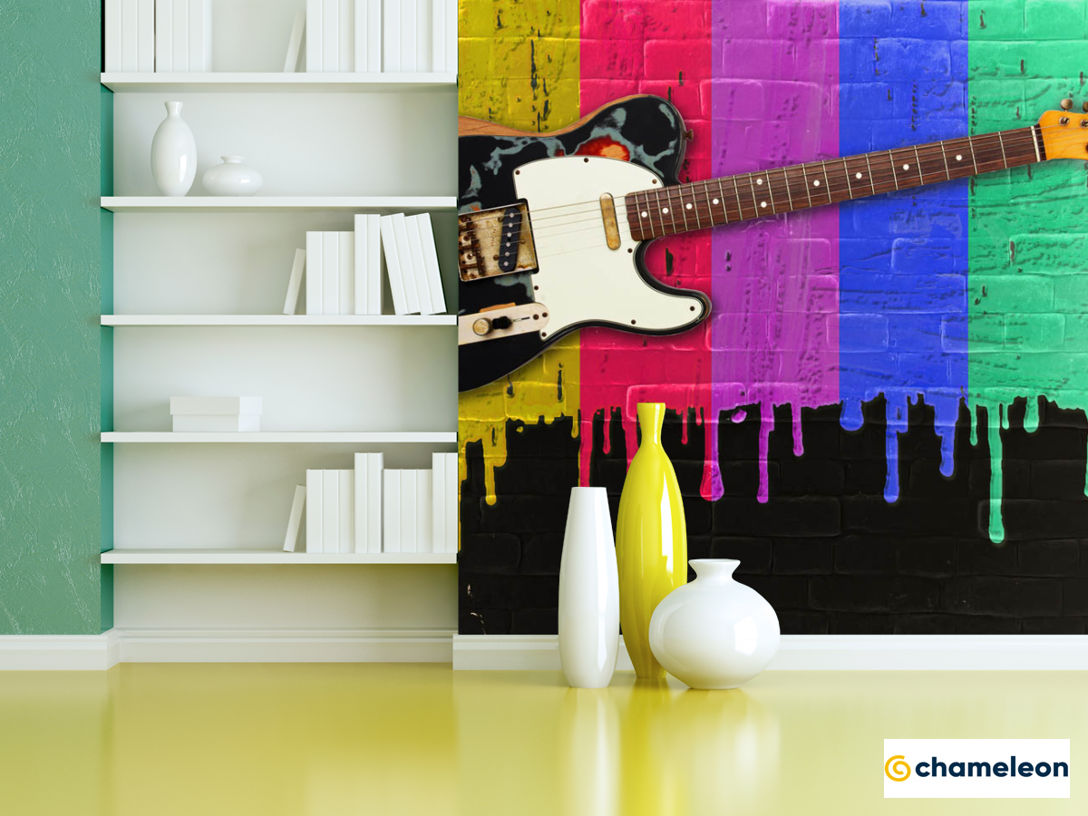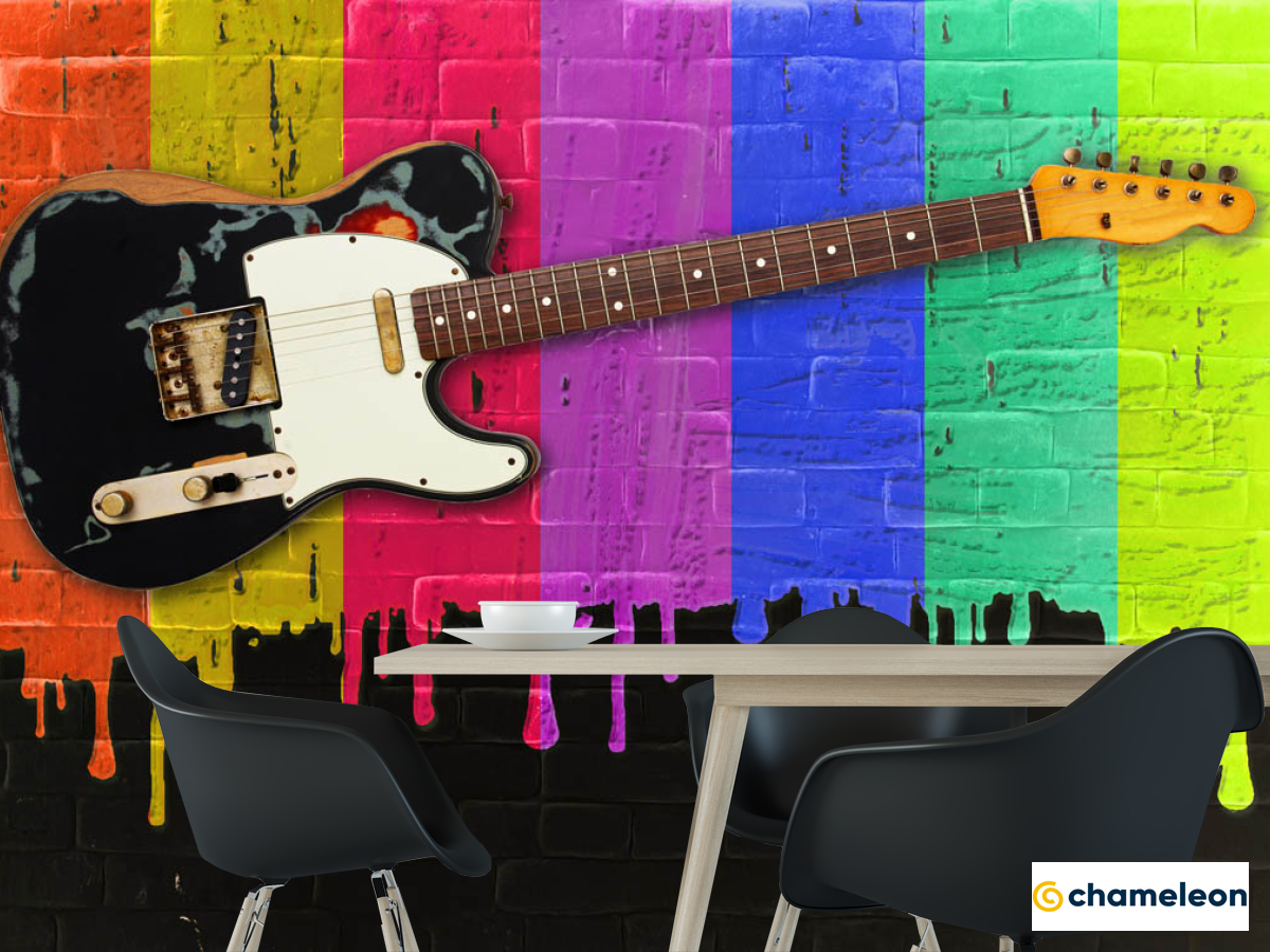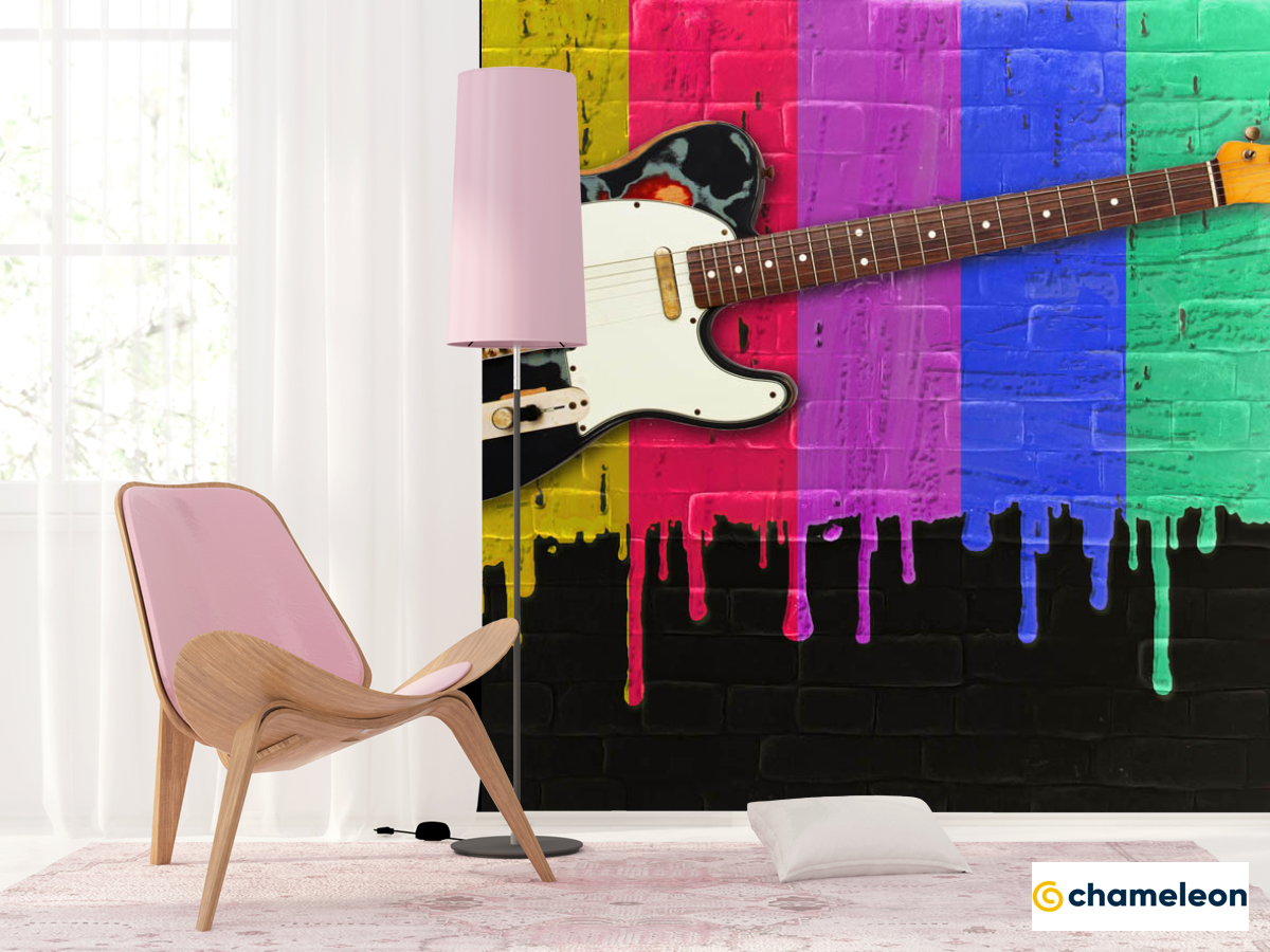 Фотошпалери «Фотошпалери Гітара на тлі фарб», (арт. 23100) - купити в інтернет-магазині «Будинок Фотошпалер» Хамелеон