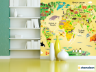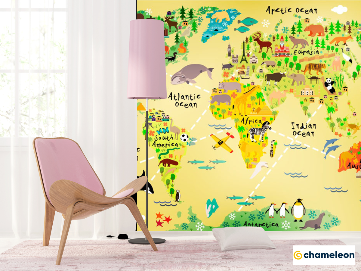 Фотошпалери «Фотошпалери Жовта дитяча карта з тваринами», (арт. 23365) - купити в інтернет-магазині «Будинок Фотошпалер» Хамелеон