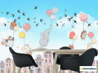 Фотошпалери Звірі летять над будиночками