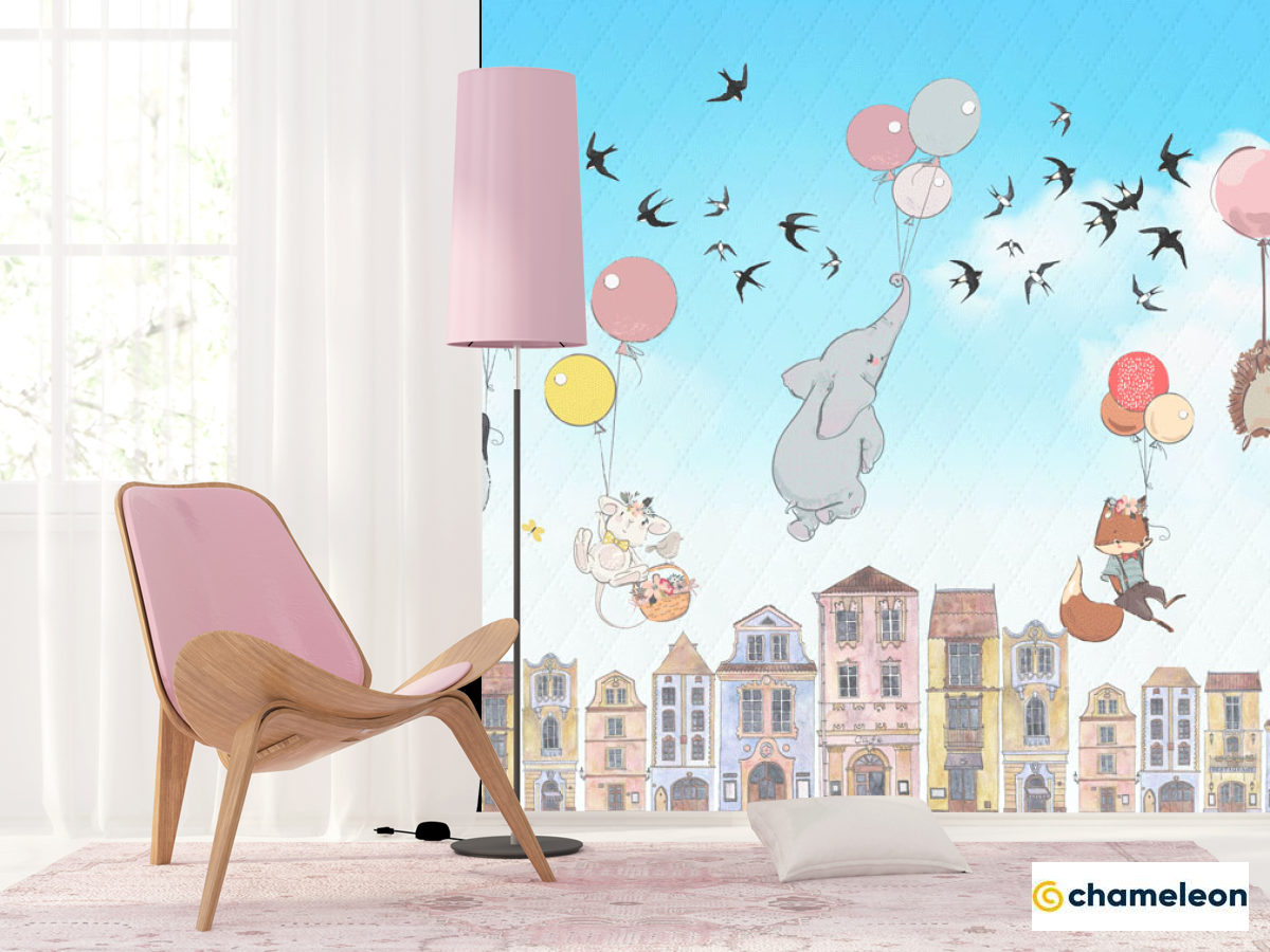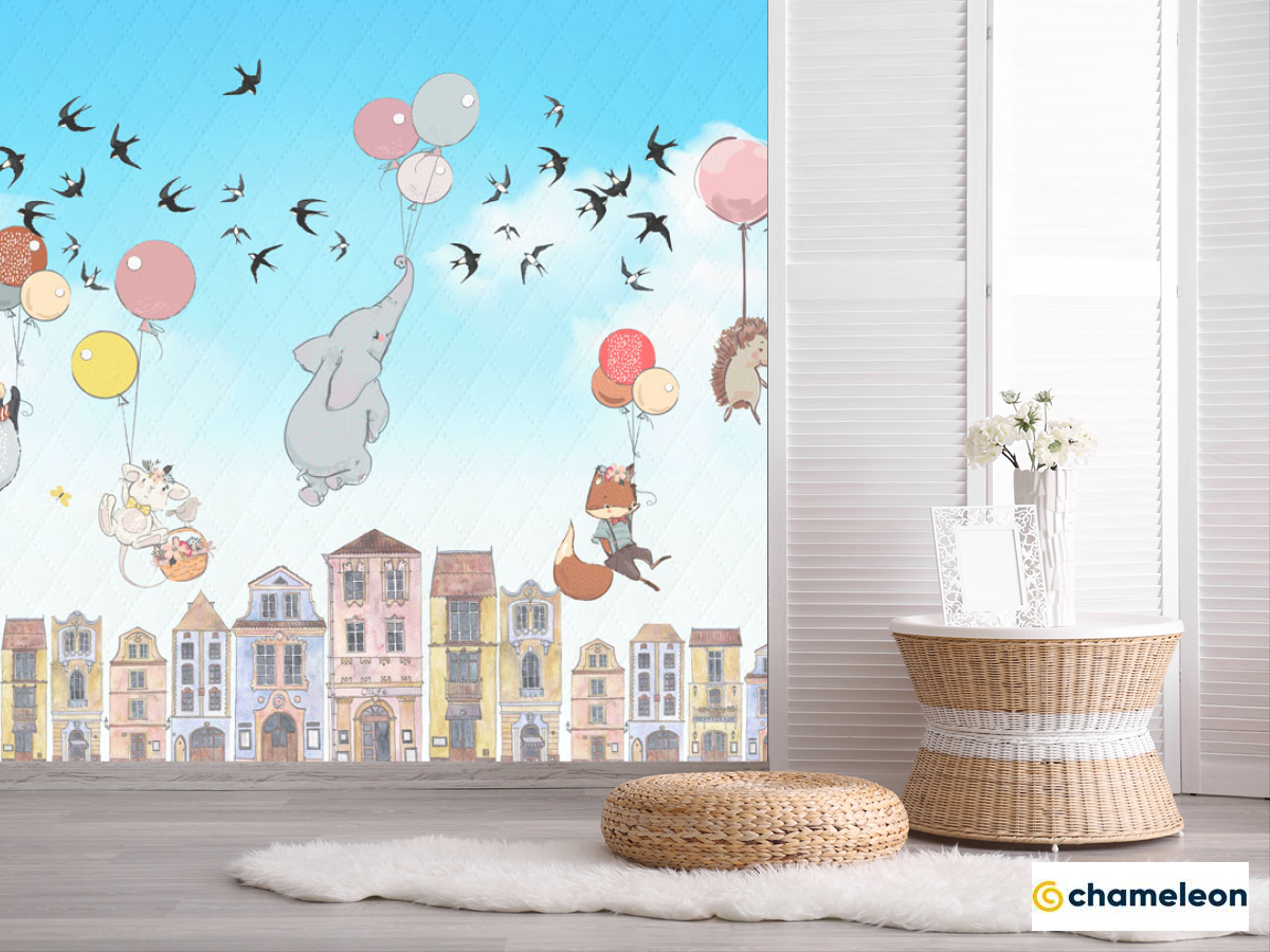 Фотошпалери «Фотошпалери Звірі летять над будиночками», (арт. 23980) - купити в інтернет-магазині «Будинок Фотошпалер» Хамелеон
