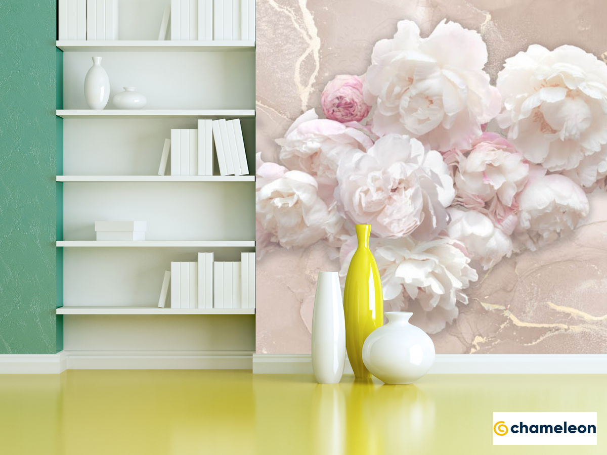 Фотошпалери «Фотошпалери Білі півонії з рожевим флюїдом», (арт. 24011) - купити в інтернет-магазині «Будинок Фотошпалер» Хамелеон
