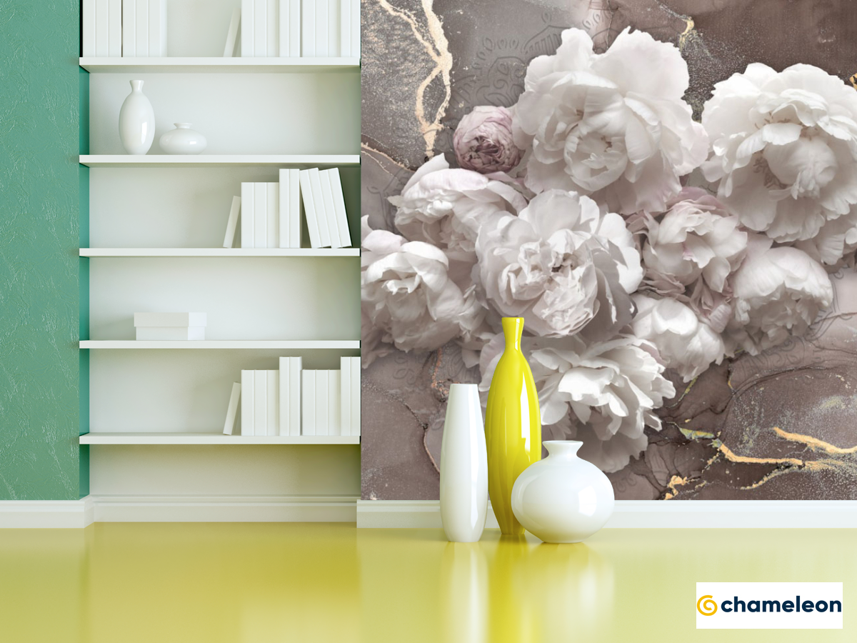 Фотошпалери «Фотошпалери півонії з золотом», (арт. 24012g) - купити в інтернет-магазині «Будинок Фотошпалер» Хамелеон