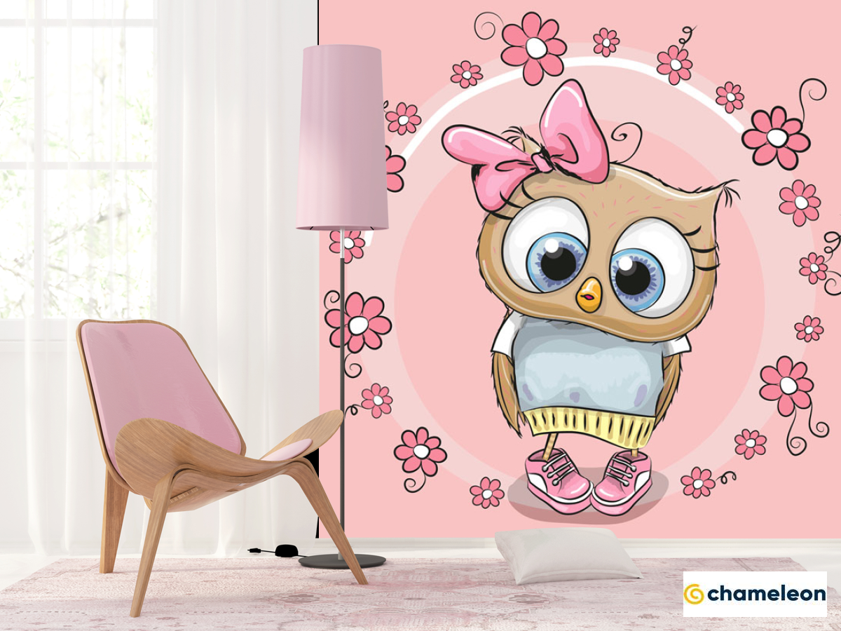Фотошпалери «Фотошпалери Совушка на рожевому тлі», (арт. 24090) - купити в інтернет-магазині «Будинок Фотошпалер» Хамелеон