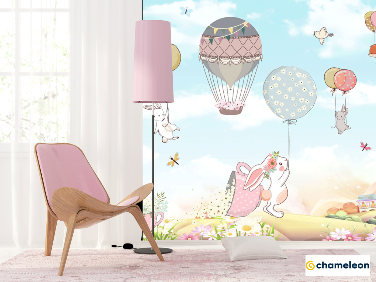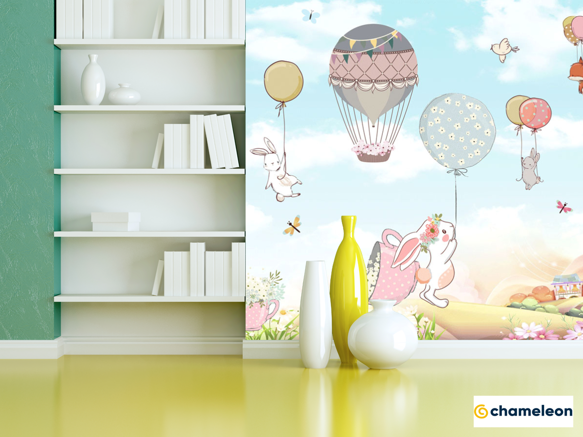 Фотошпалери «Фотошпалери Зайчика на повітряних кулях», (арт. 24103) - купити в інтернет-магазині «Будинок Фотошпалер» Хамелеон