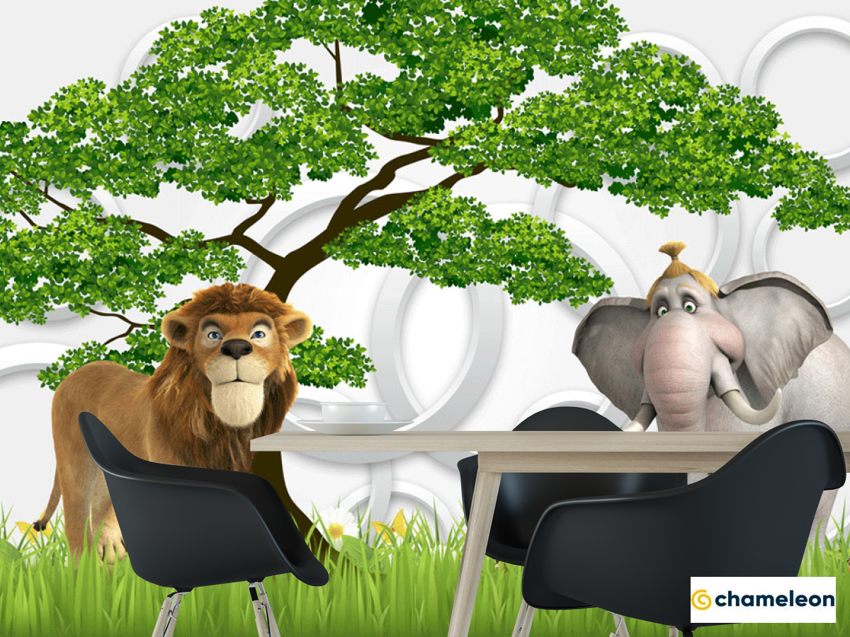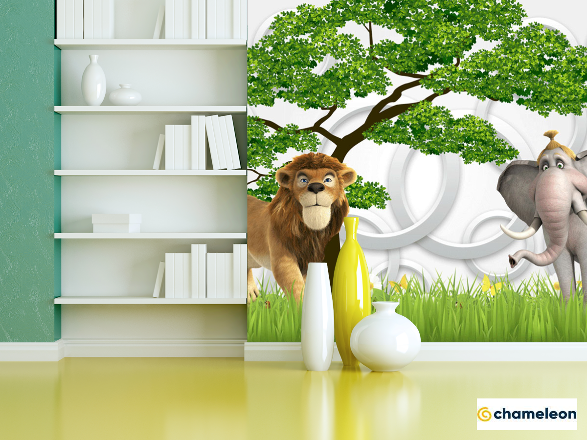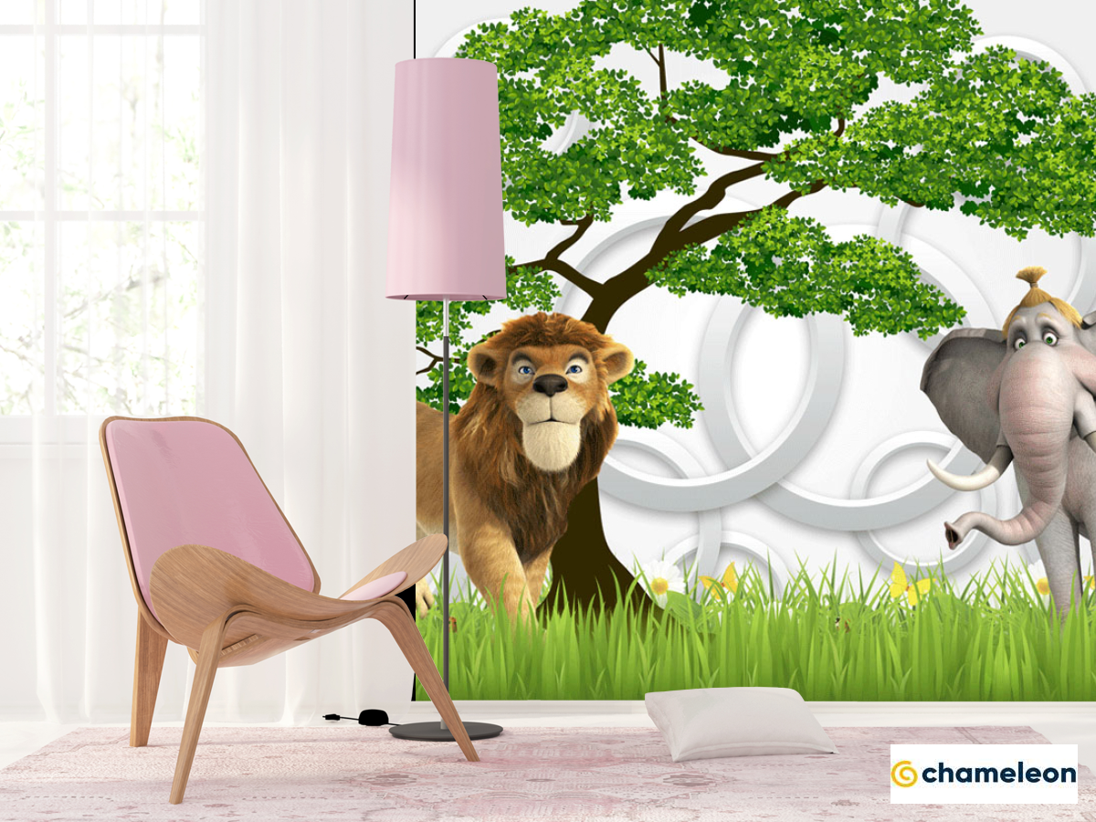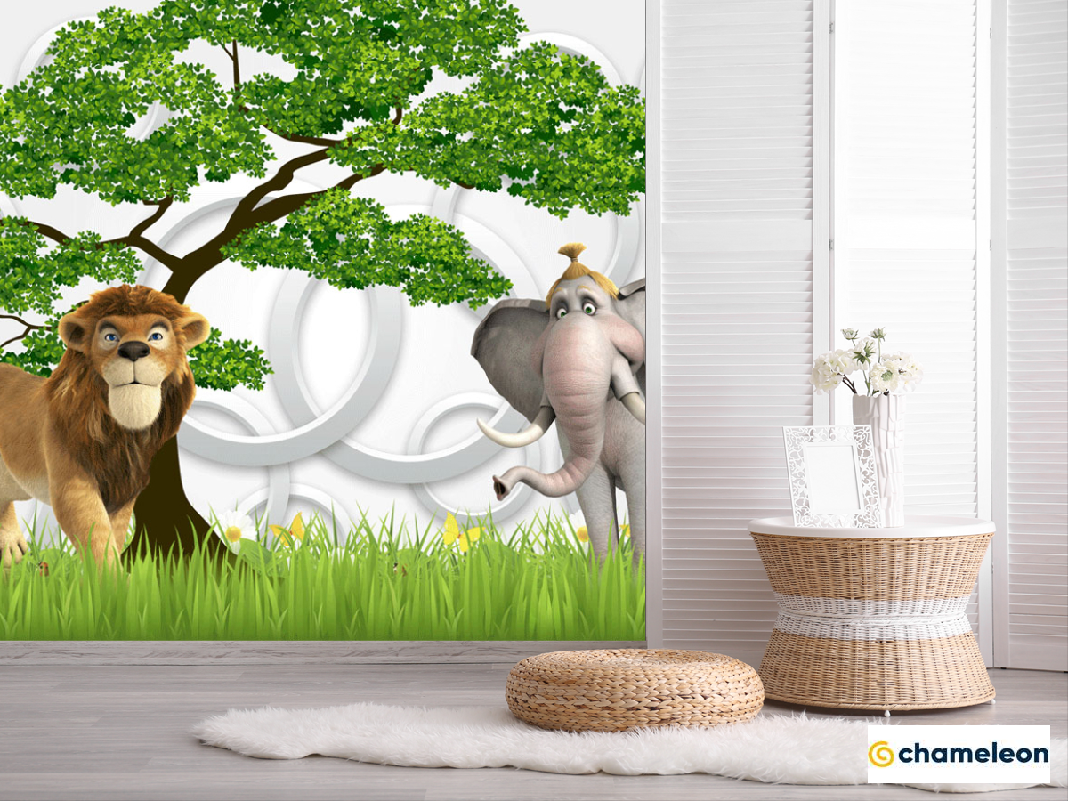 Фотошпалери «Фотошпалери Слон і лев 3д», (арт. 24112) - купити в інтернет-магазині «Будинок Фотошпалер» Хамелеон