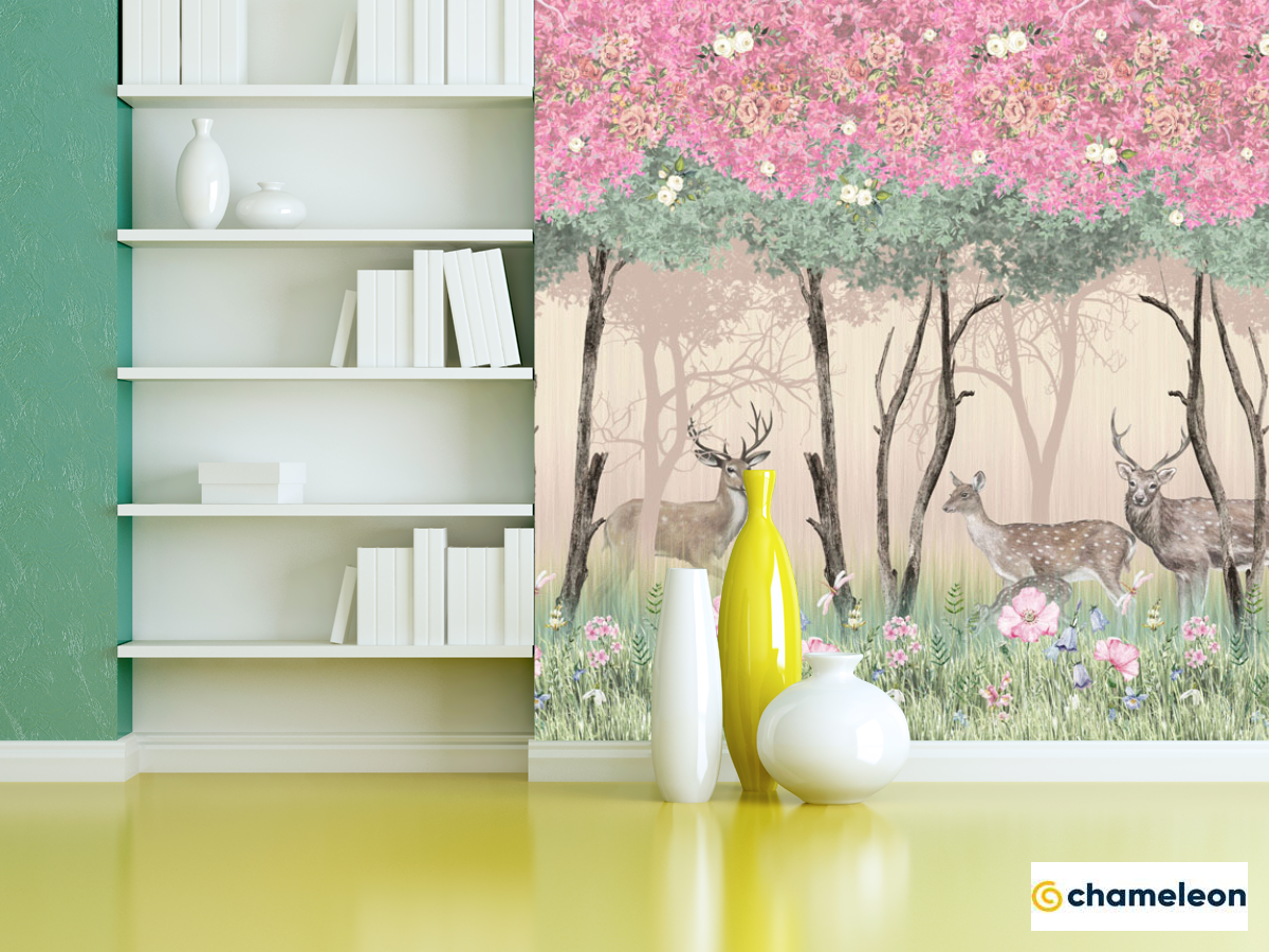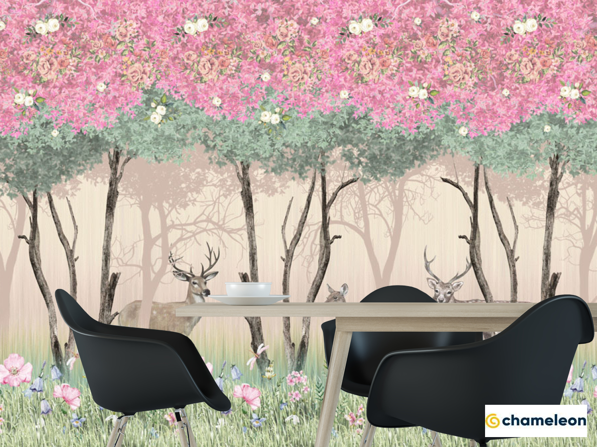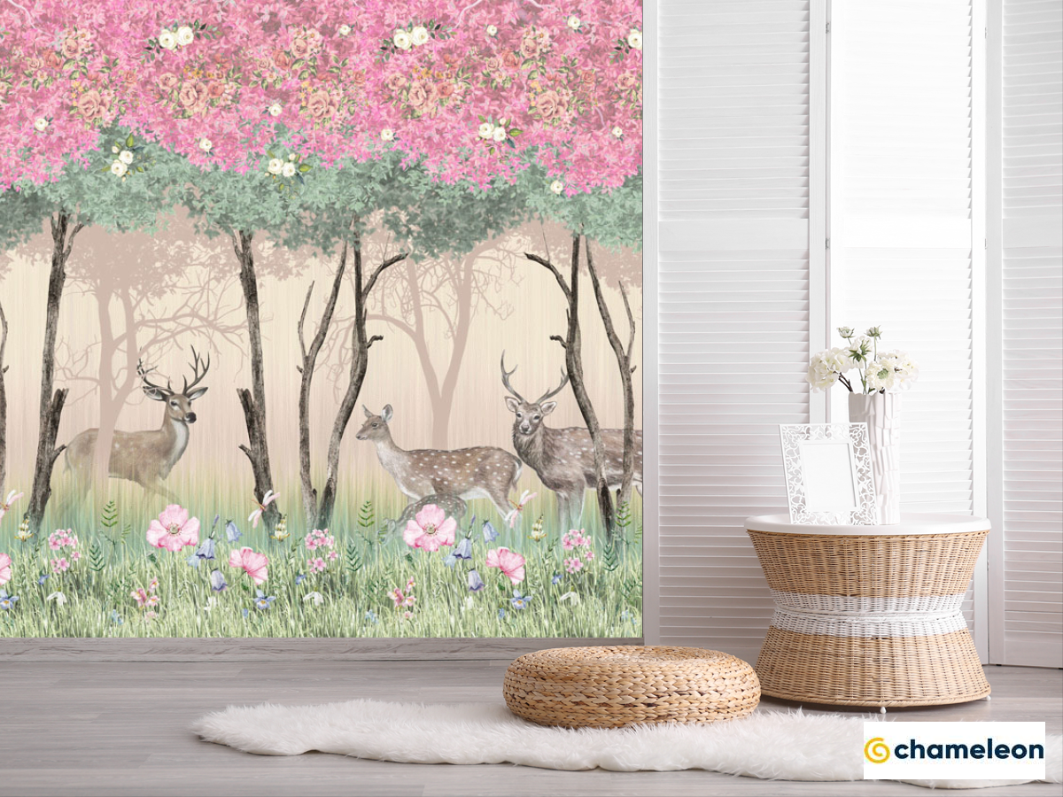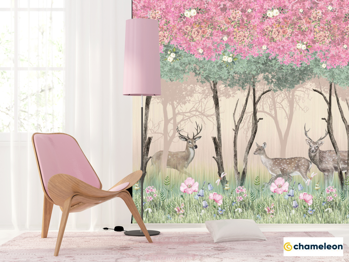 Фотошпалери «Фотошпалери Олені в рожевому лісі», (арт. 24113) - купити в інтернет-магазині «Будинок Фотошпалер» Хамелеон