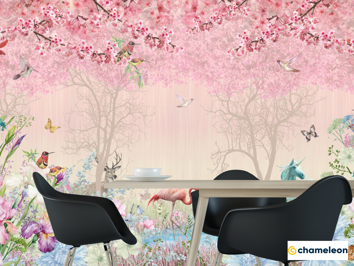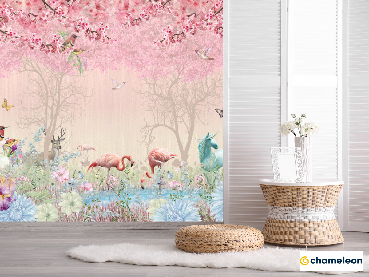 Фотошпалери «Фотошпалери Рожеві фламінго в райському саду», (арт. 24178) - купити в інтернет-магазині «Будинок Фотошпалер» Хамелеон