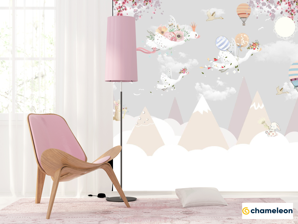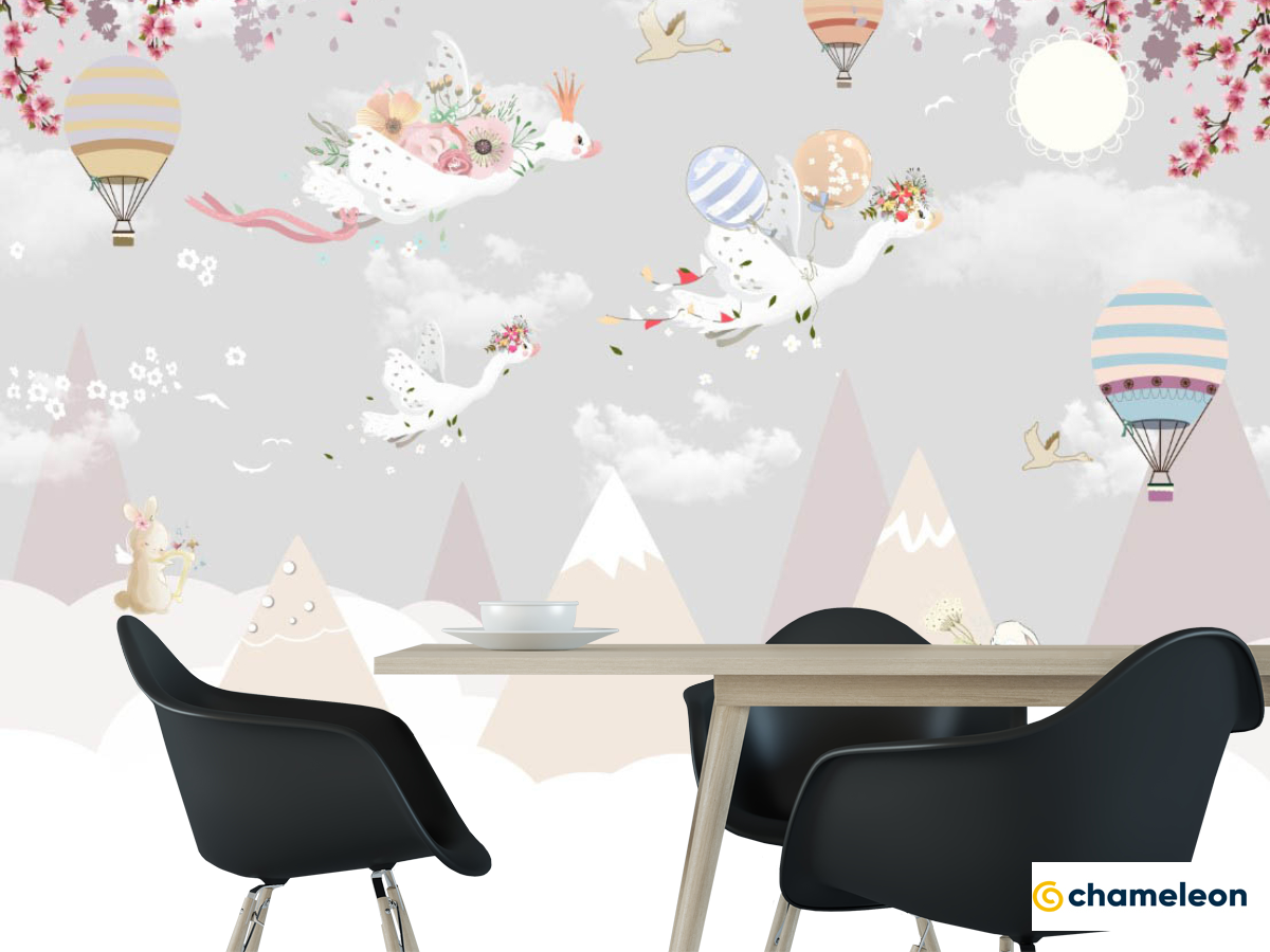 Фотошпалери «Фотошпалери Лелеки на повітряних кульках», (арт. 24274) - купити в інтернет-магазині «Будинок Фотошпалер» Хамелеон