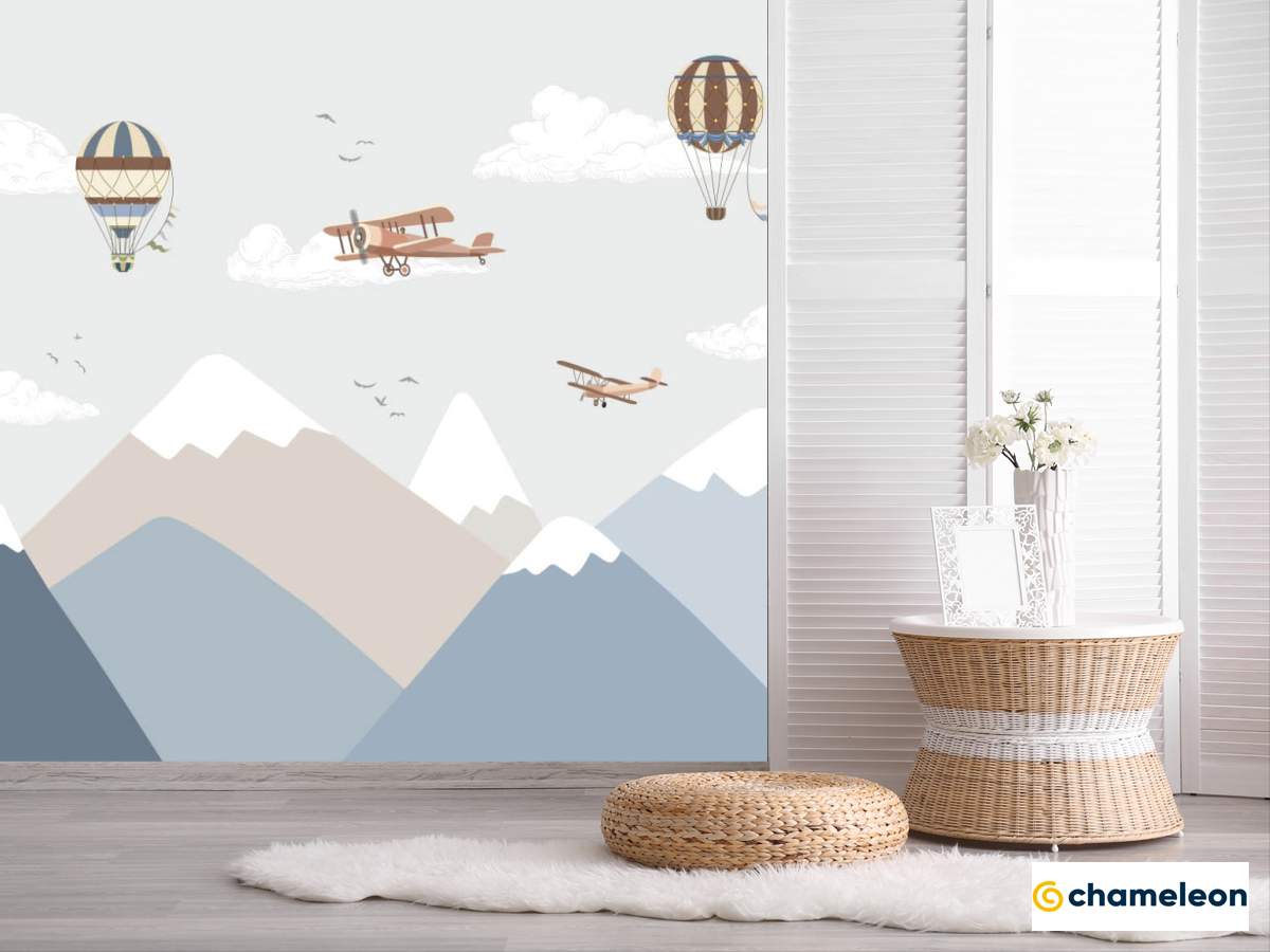 Фотошпалери «Фотошпалери Повітряні кулі і блакитні гори», (арт. 24276) - купити в інтернет-магазині «Будинок Фотошпалер» Хамелеон