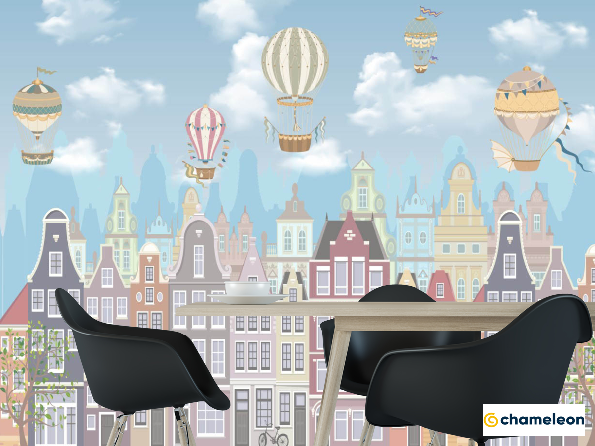 Фотошпалери «Фотошпалери Повітряні кулі над будиночками», (арт. 24279) - купити в інтернет-магазині «Будинок Фотошпалер» Хамелеон