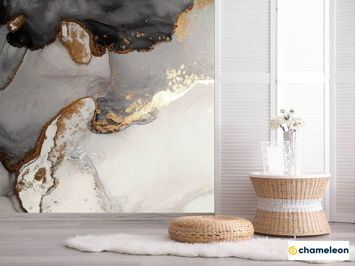 Фотошпалери «Фотошпалери Флюїд чб з золотом», (арт. 24753) - купити в інтернет-магазині «Будинок Фотошпалер» Хамелеон