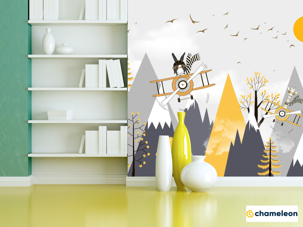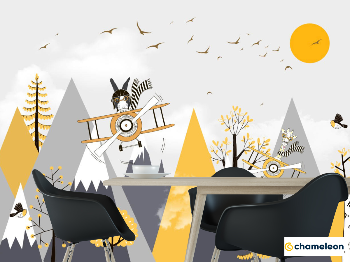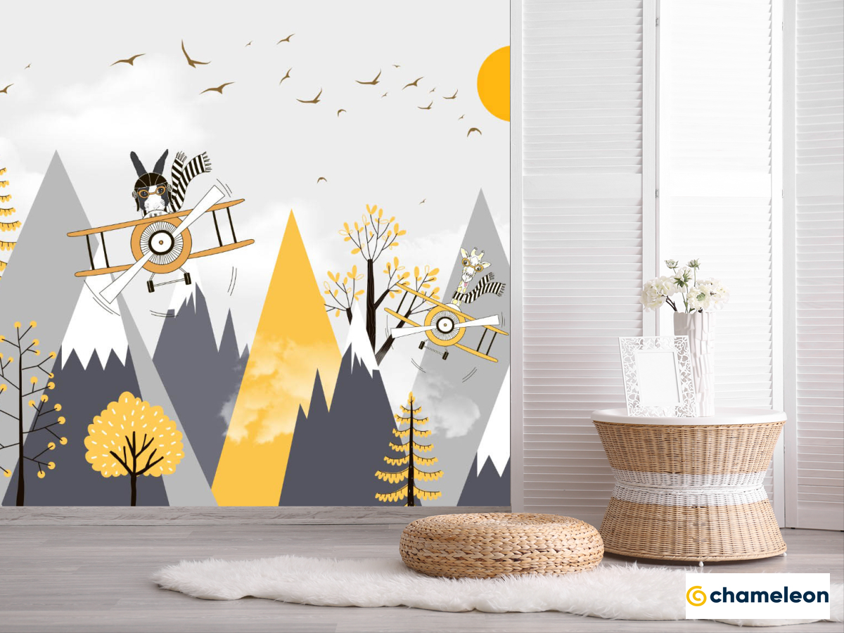 Фотошпалери «Фотошпалери Гори дитячі жовто-сірі», (арт. 24784) - купити в інтернет-магазині «Будинок Фотошпалер» Хамелеон