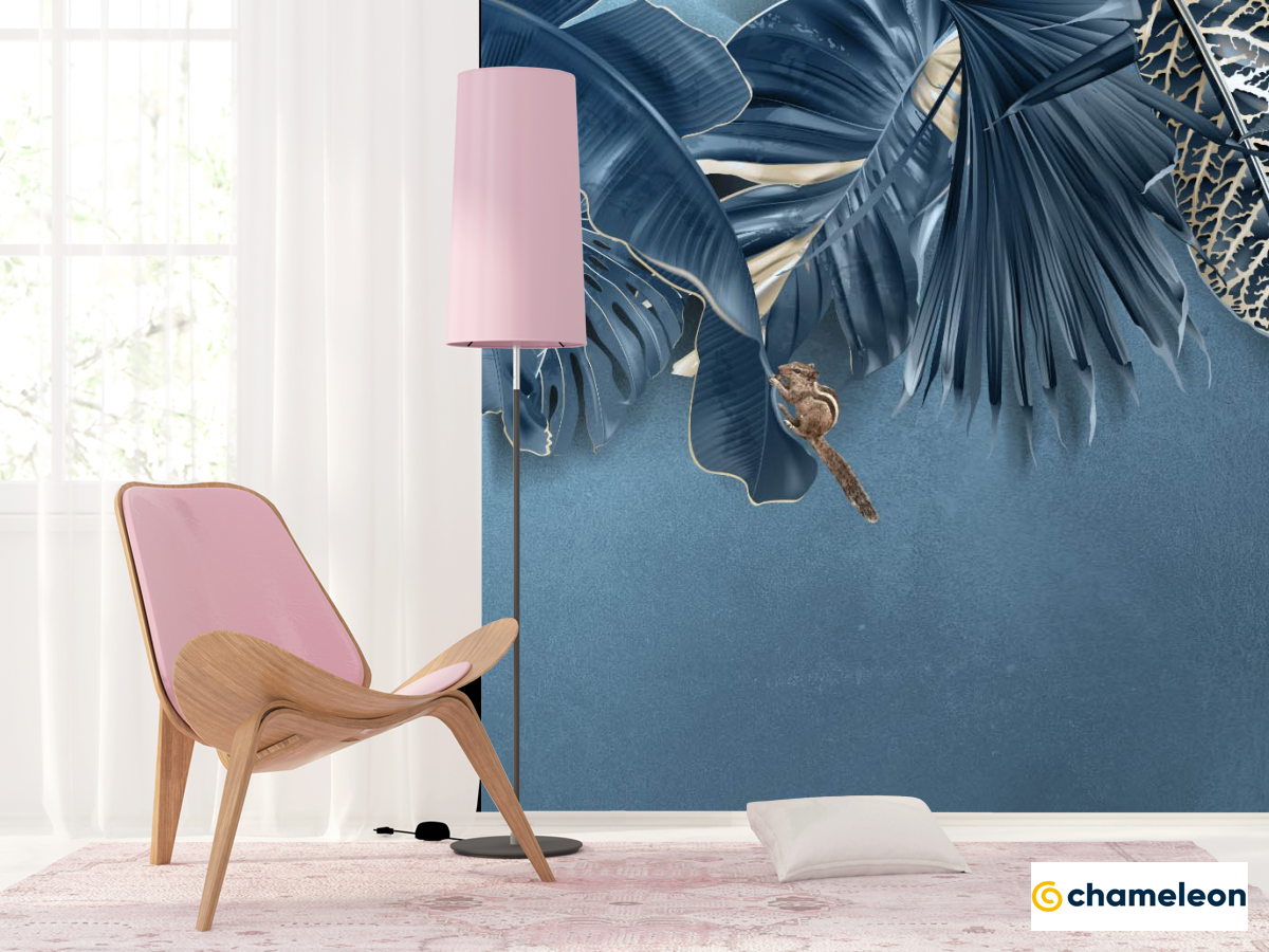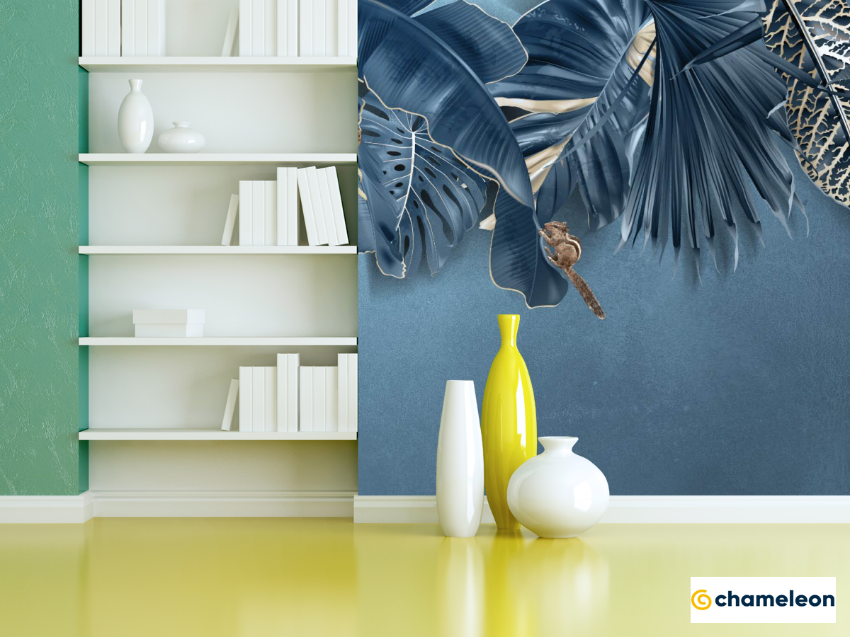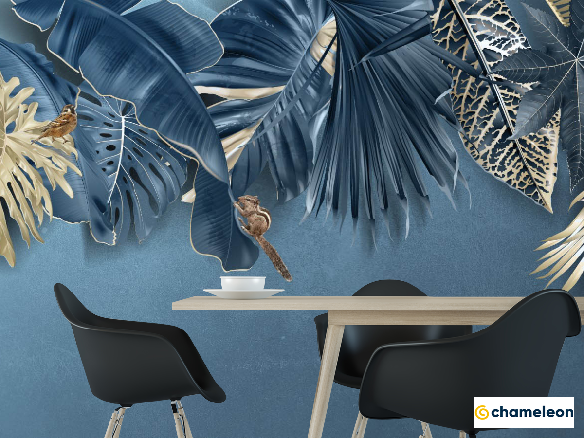 Фотошпалери «Фотошпалери Синьо золоті листя», (арт. 24936) - купити в інтернет-магазині «Будинок Фотошпалер» Хамелеон