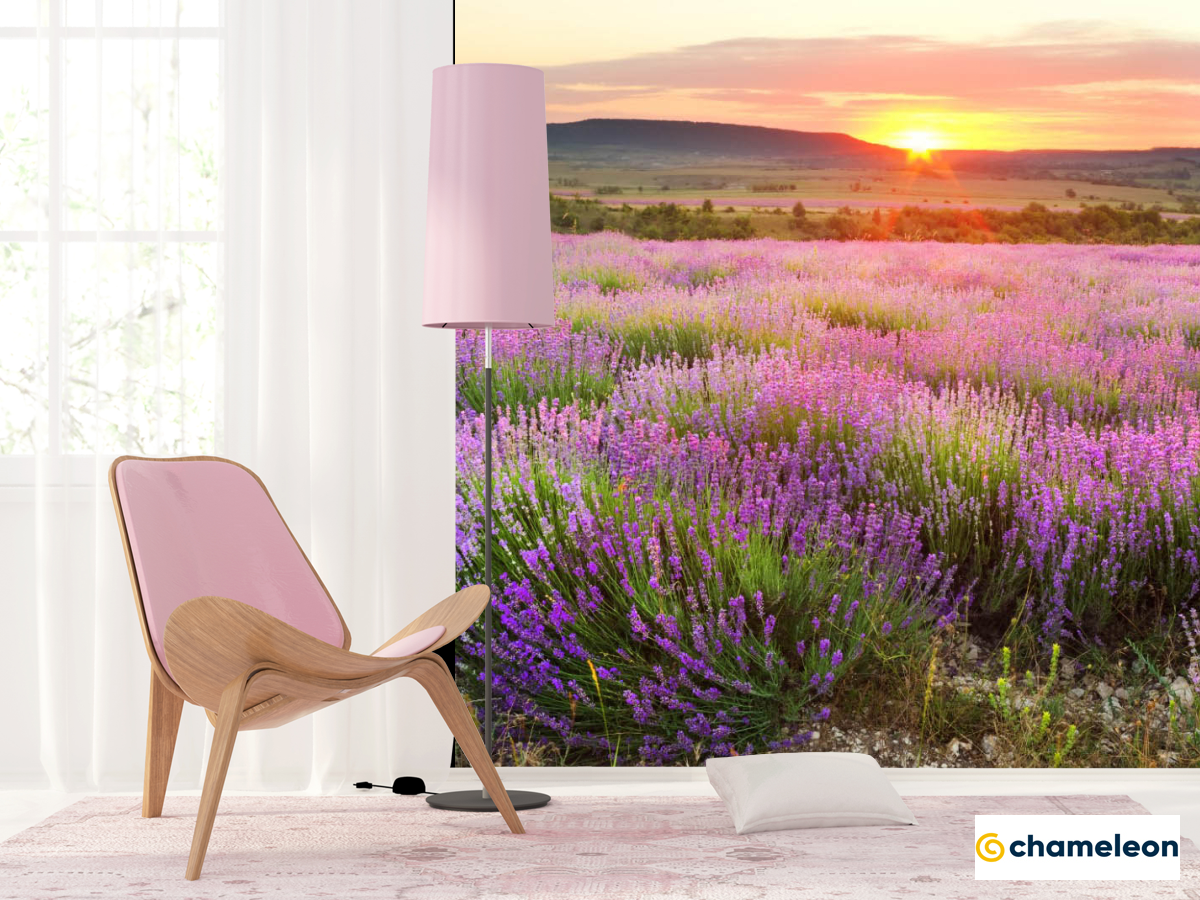 Фотошпалери «Фотошпалери Лавандове поле на заході», (арт. 25324) - купити в інтернет-магазині «Будинок Фотошпалер» Хамелеон
