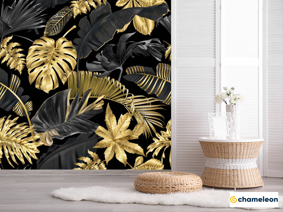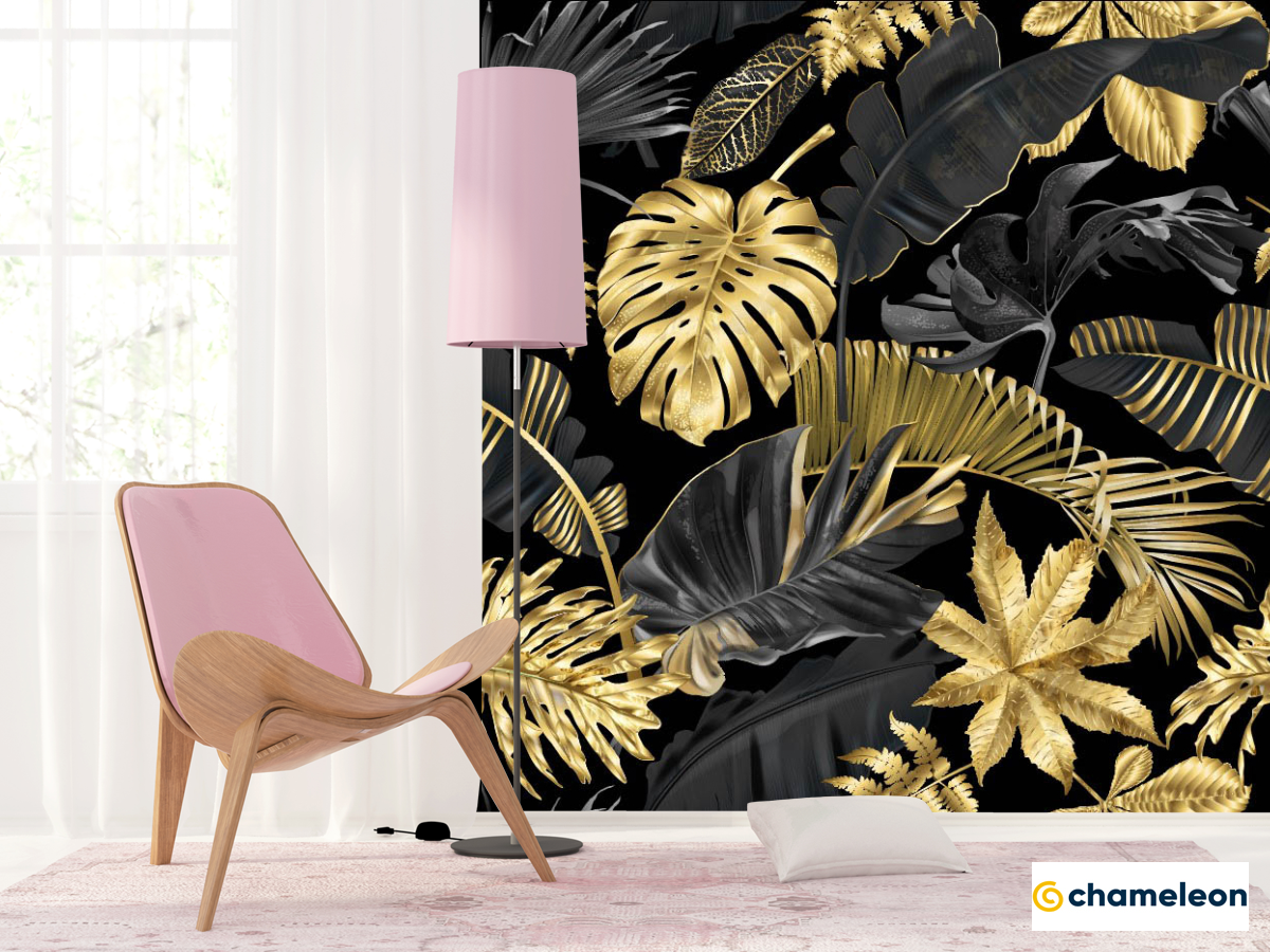 Фотошпалери «Фотошпалери Тропічні золоті листя», (арт. 25740) - купити в інтернет-магазині «Будинок Фотошпалер» Хамелеон