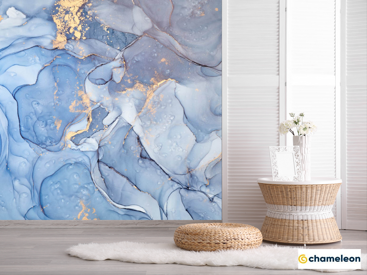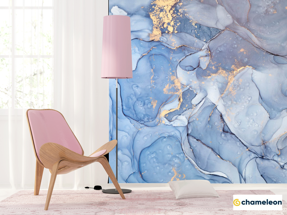 Фотошпалери «Фотошпалери Блакитний Fluid art з золотом», (арт. 25749) - купити в інтернет-магазині «Будинок Фотошпалер» Хамелеон
