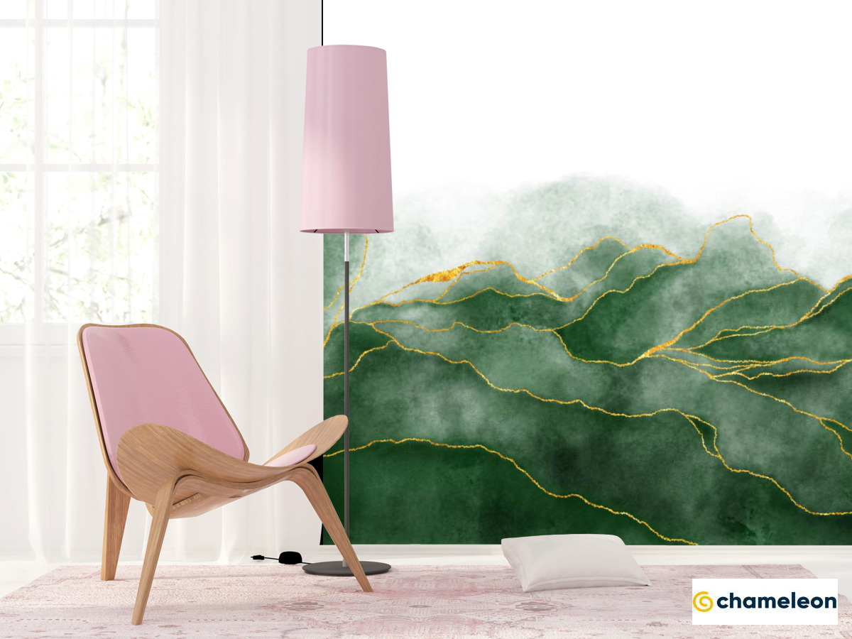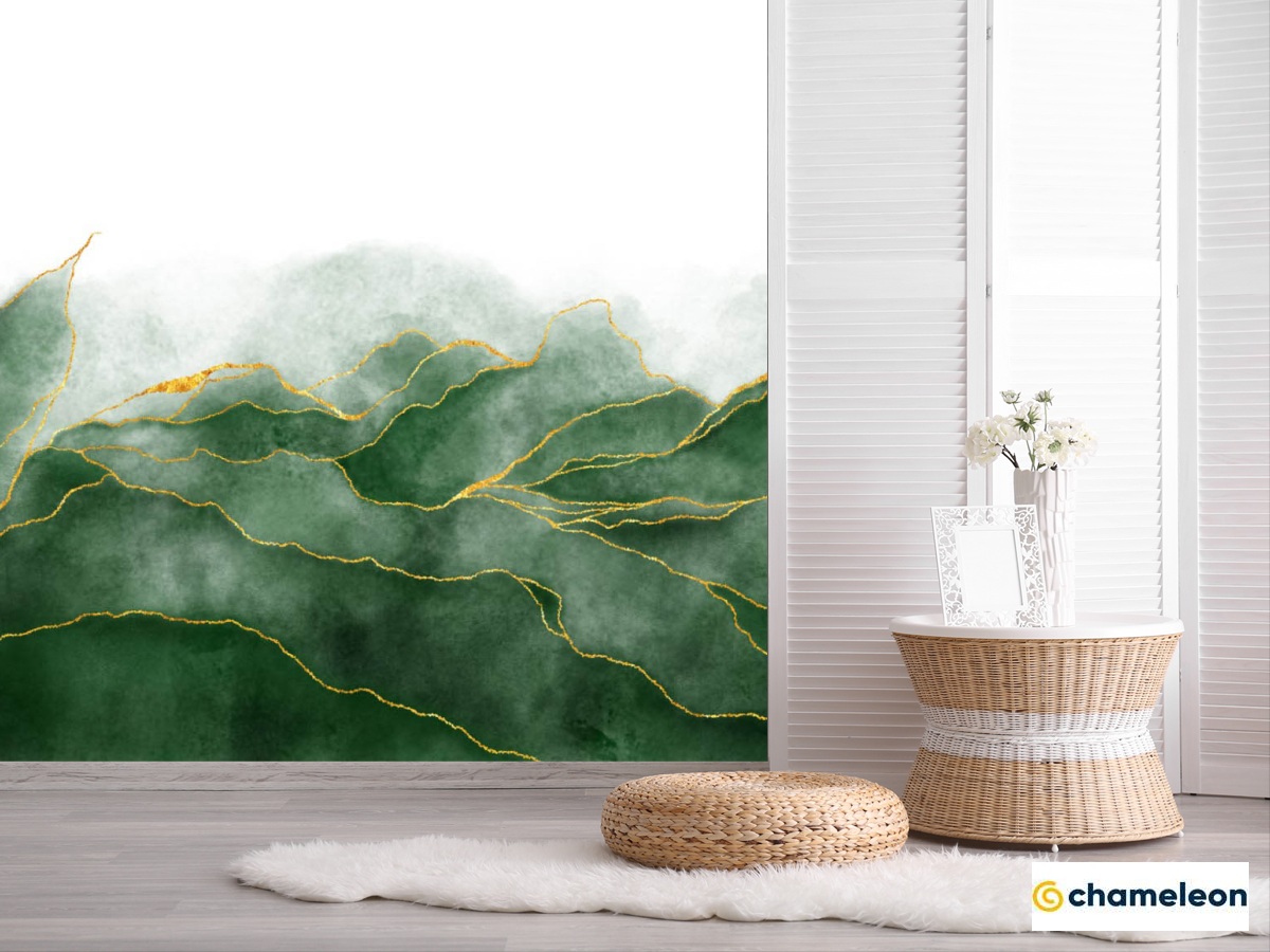 Фотошпалери «Фотошпалери Зелений Fluid art з золотом», (арт. 25910) - купити в інтернет-магазині «Будинок Фотошпалер» Хамелеон