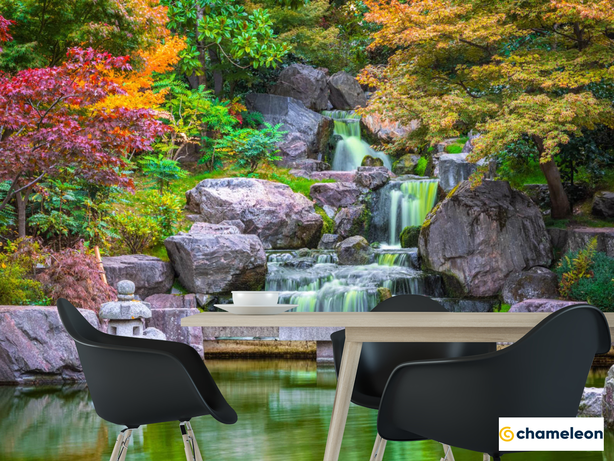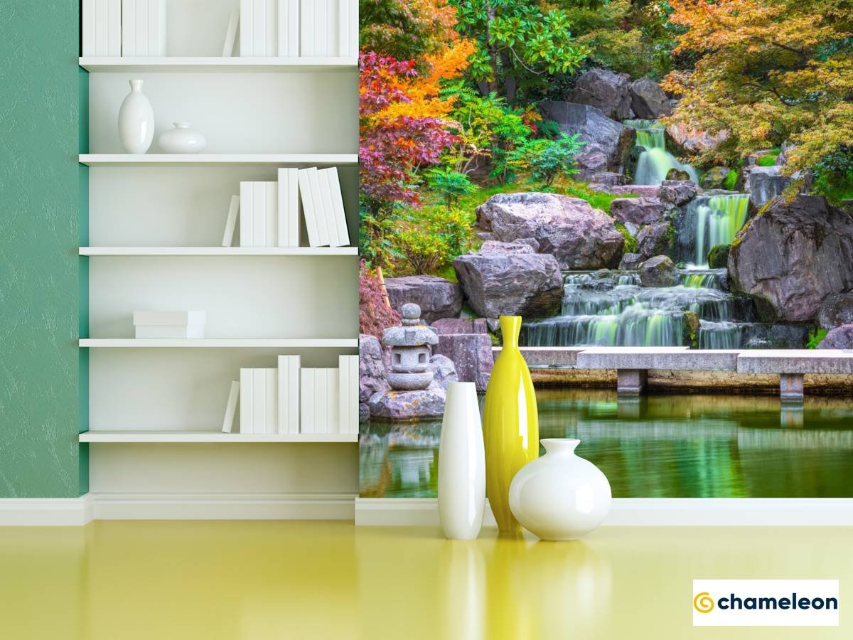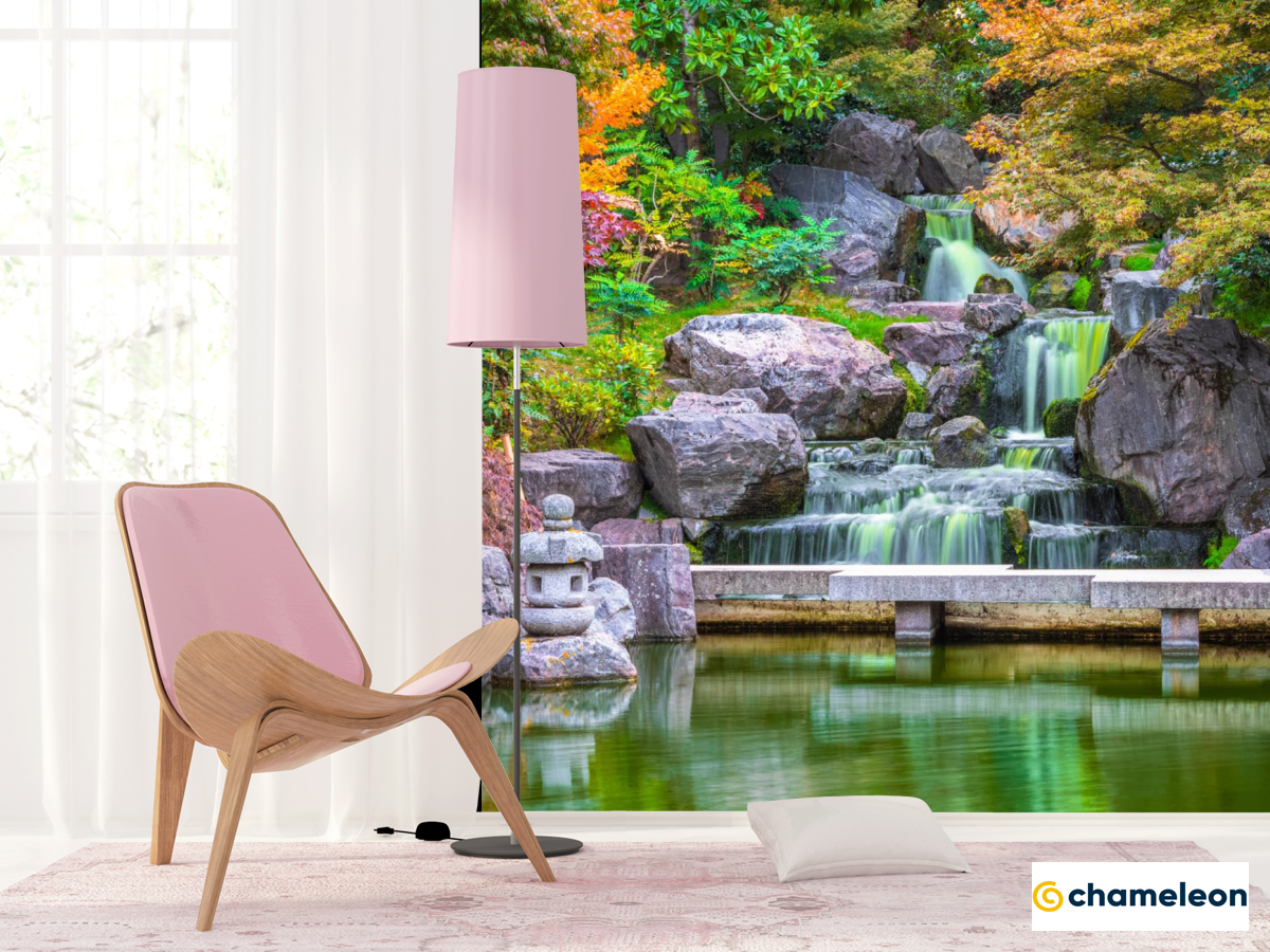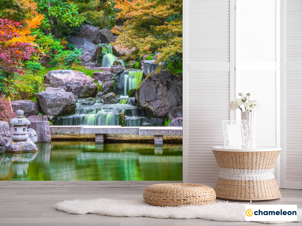 Фотошпалери «Фотошпалери водоспад в японському саду», (арт. 26120) - купити в інтернет-магазині «Будинок Фотошпалер» Хамелеон