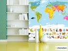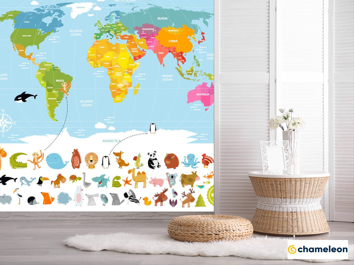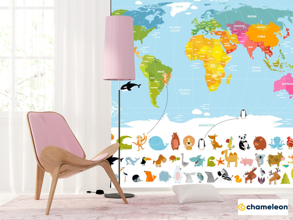 Фотошпалери «Фотошпалери Карта з континентами і тваринами», (арт. 27276) - купити в інтернет-магазині «Будинок Фотошпалер» Хамелеон