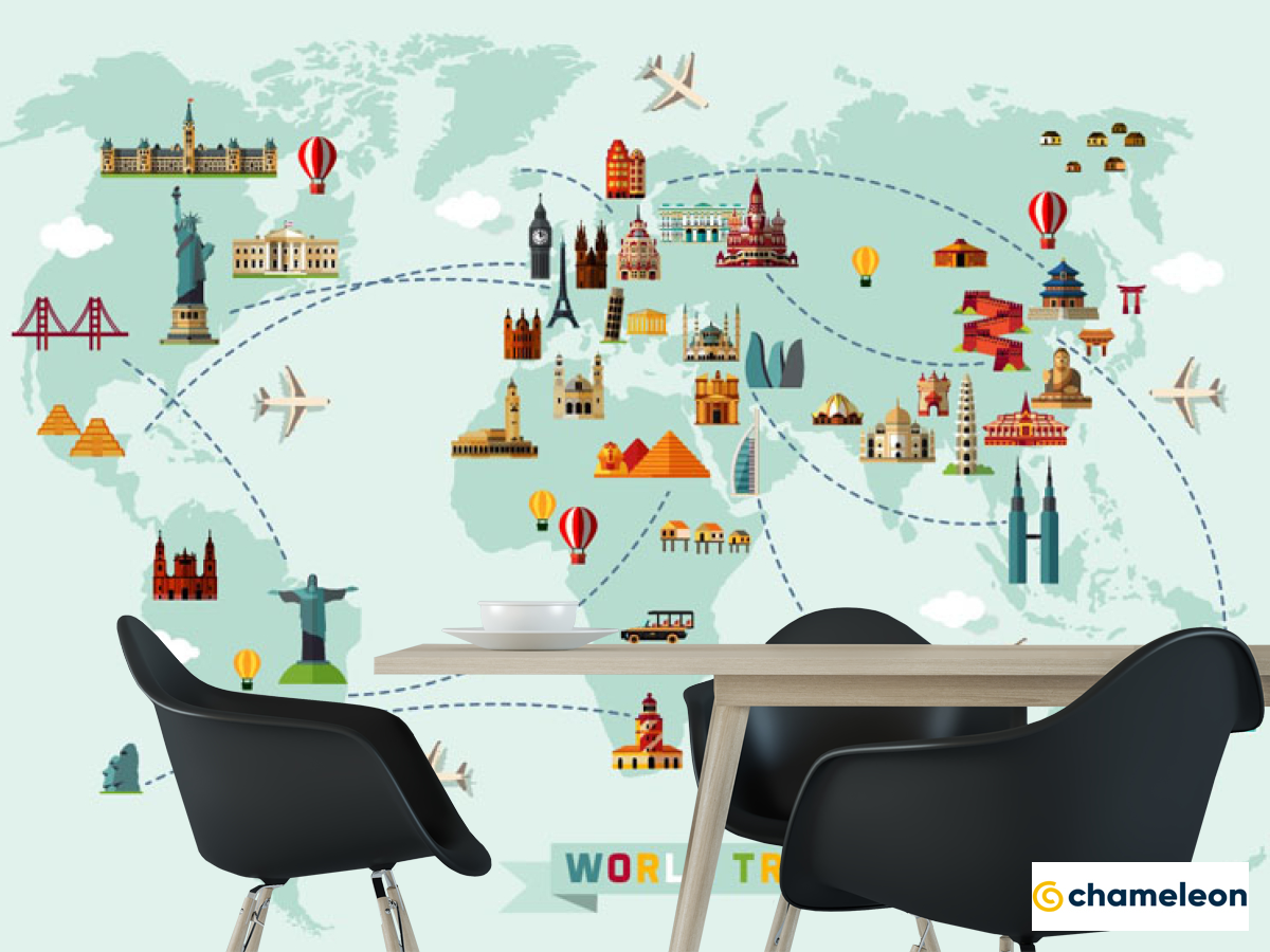 Фотошпалери «Фотошпалери Зелена карта подорожі для дітей», (арт. 27282) - купити в інтернет-магазині «Будинок Фотошпалер» Хамелеон