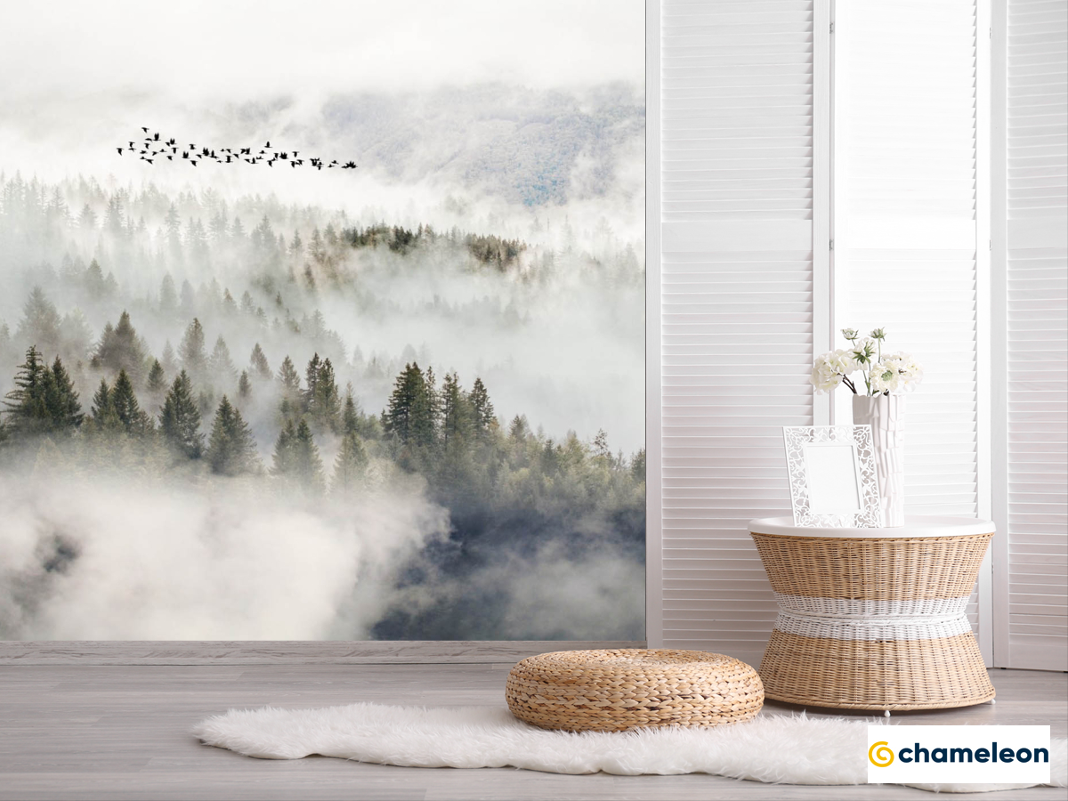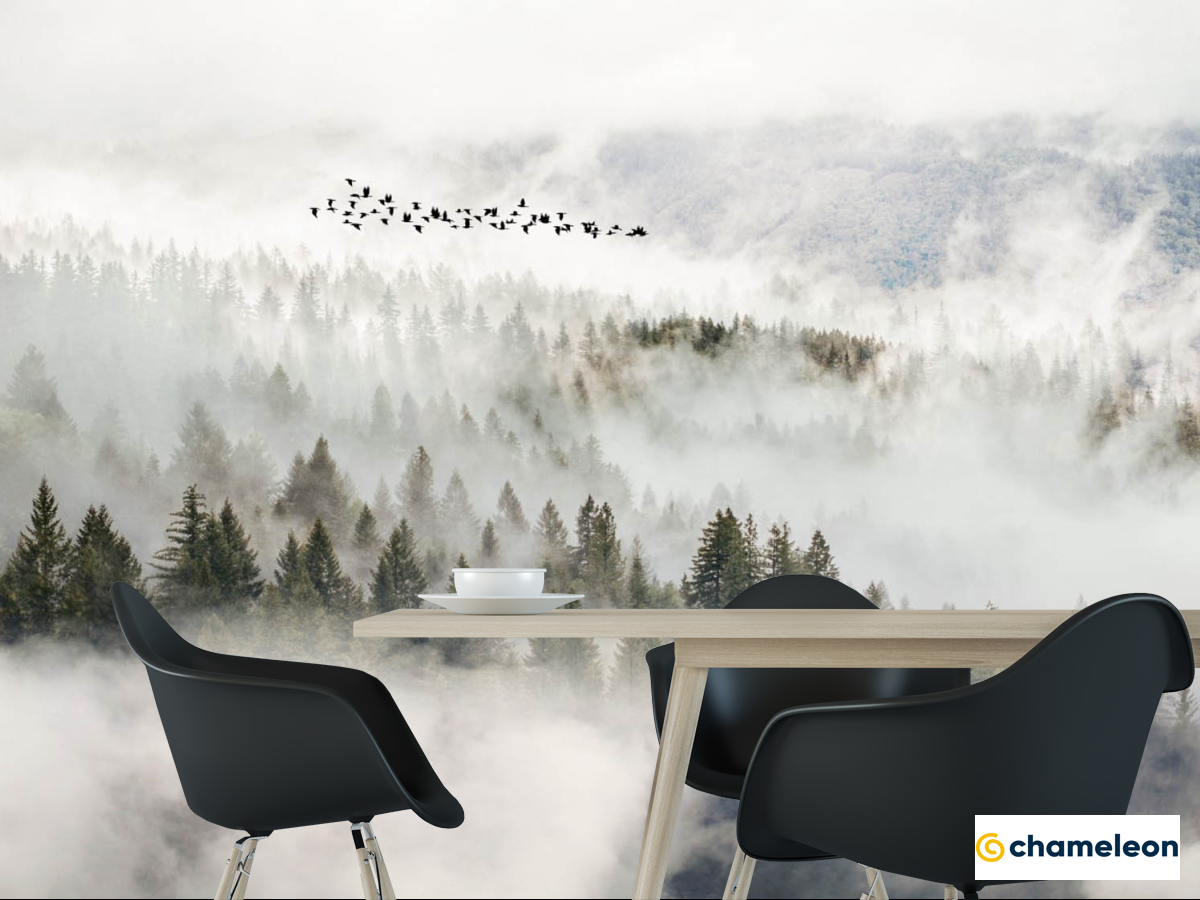 Фотошпалери «Фотошпалери птиці над туманним лісом», (арт. 27615) - купити в інтернет-магазині «Будинок Фотошпалер» Хамелеон