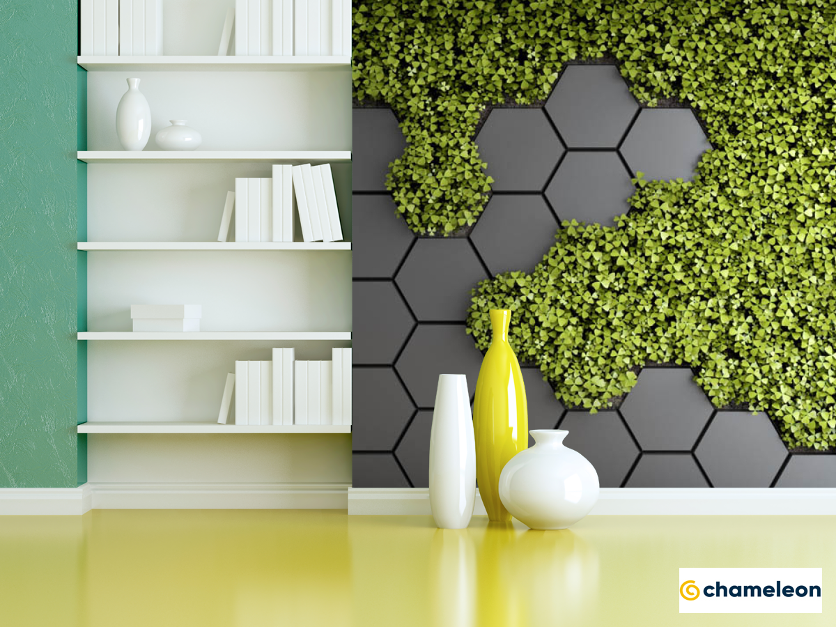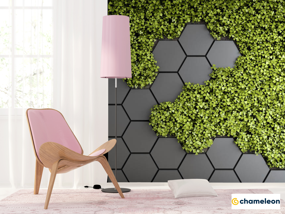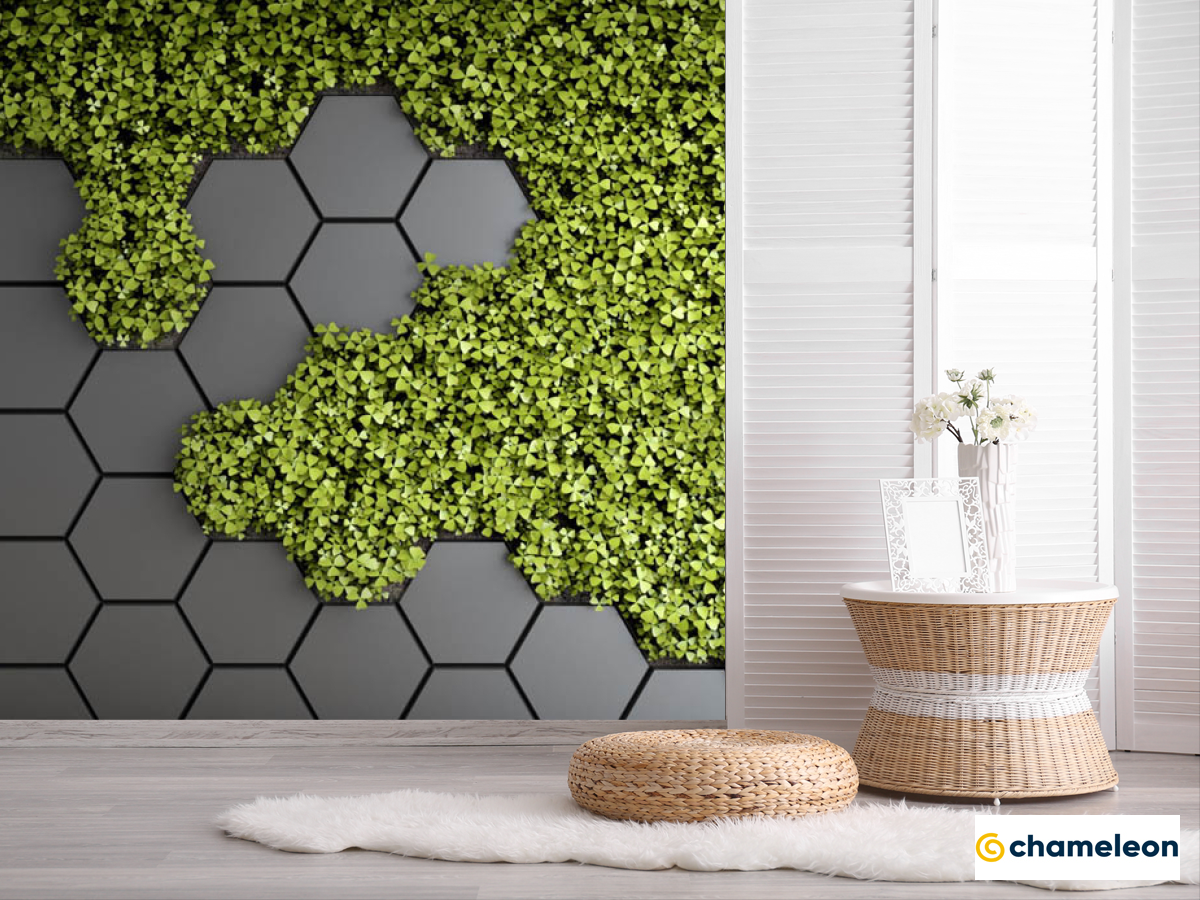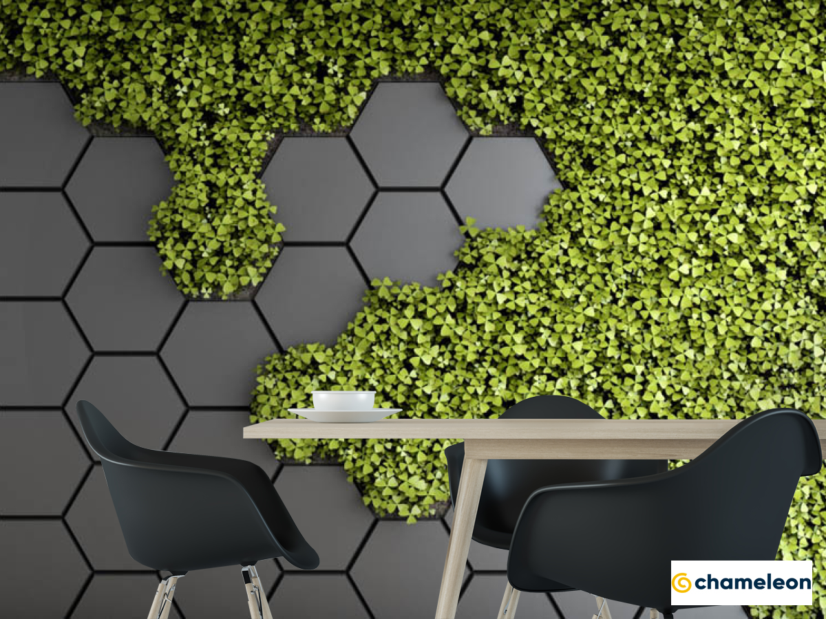 Фотошпалери «Фотошпалери шестикутники з зеленню», (арт. 28506) - купити в інтернет-магазині «Будинок Фотошпалер» Хамелеон