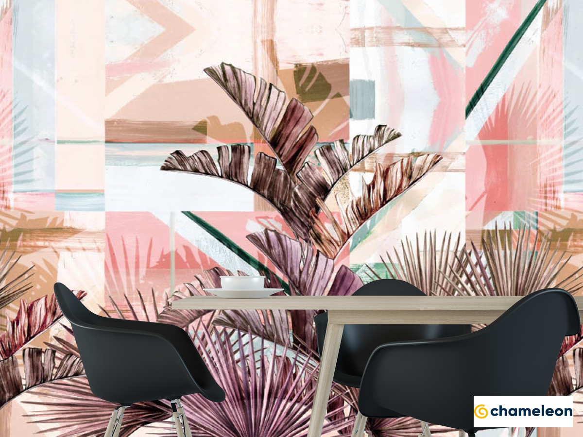 Фотошпалери «Фотошпалери рожеві тропічні листя», (арт. 28755) - купити в інтернет-магазині «Будинок Фотошпалер» Хамелеон