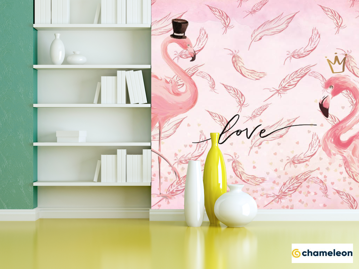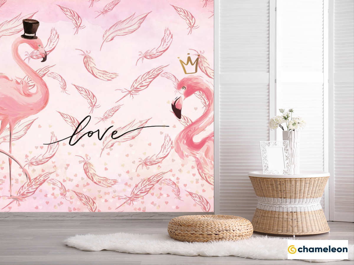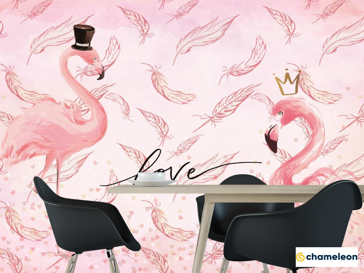 Фотошпалери «Фотошпалери Рожеві фламінго в капелюсі», (арт. 28995) - купити в інтернет-магазині «Будинок Фотошпалер» Хамелеон