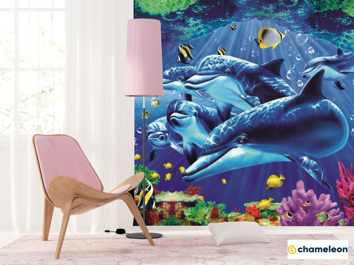 Фотошпалери «Фотошпалери 3Д Дельфіни», (арт. 29026) - купити в інтернет-магазині «Будинок Фотошпалер» Хамелеон