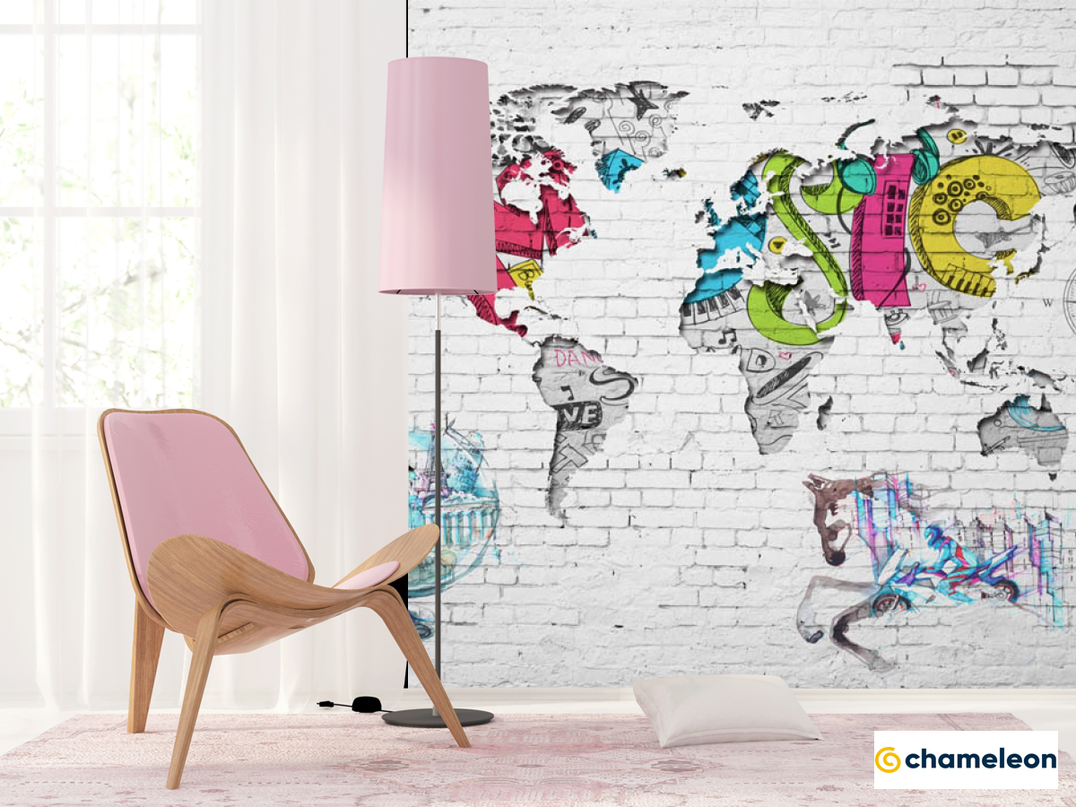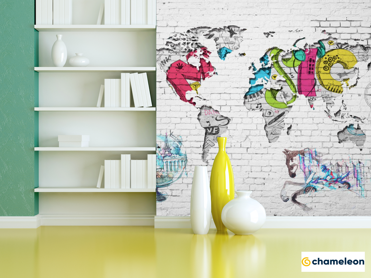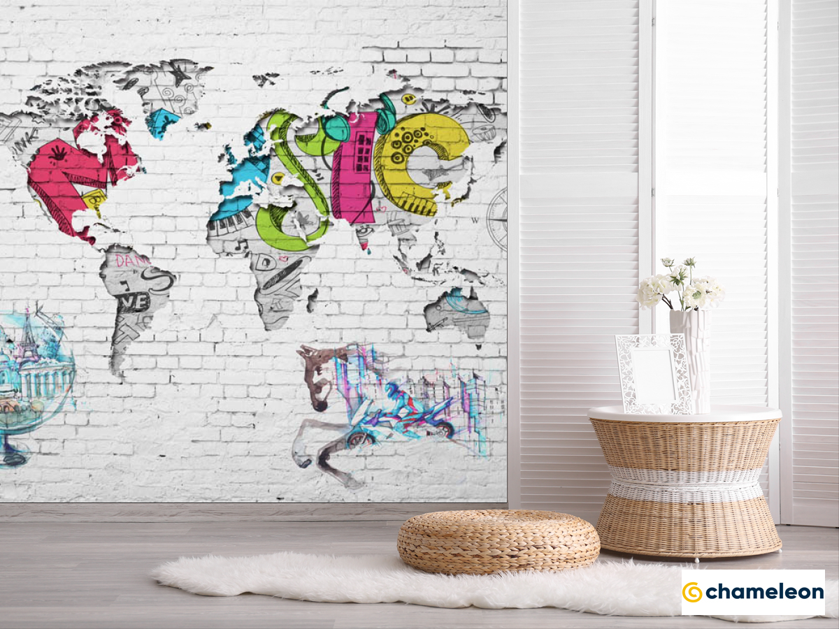 Фотошпалери «Фотошпалери Карта на тлі цегли», (арт. 29182) - купити в інтернет-магазині «Будинок Фотошпалер» Хамелеон
