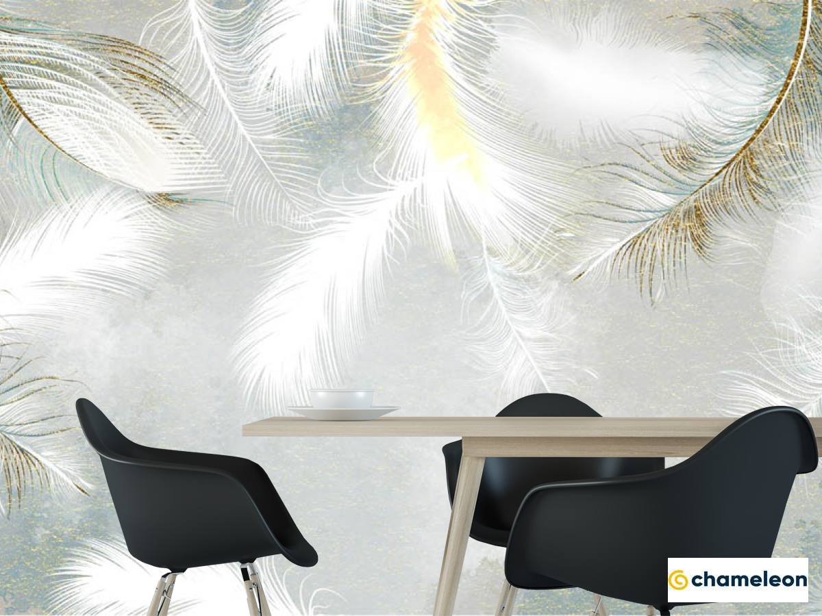Фотошпалери біле пір'я з золотом