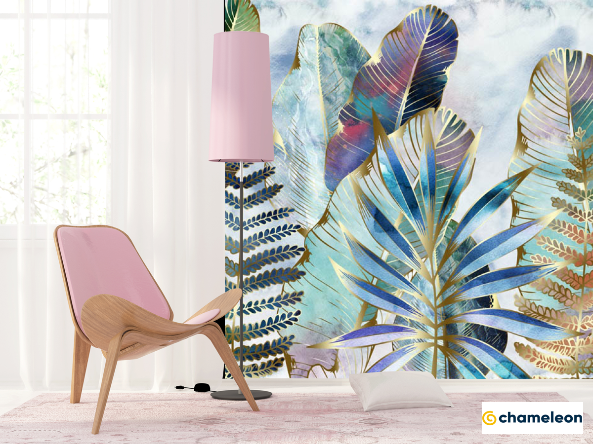 Фотошпалери «Фотошпалери Тропічні листя з золотом», (арт. 29318) - купити в інтернет-магазині «Будинок Фотошпалер» Хамелеон