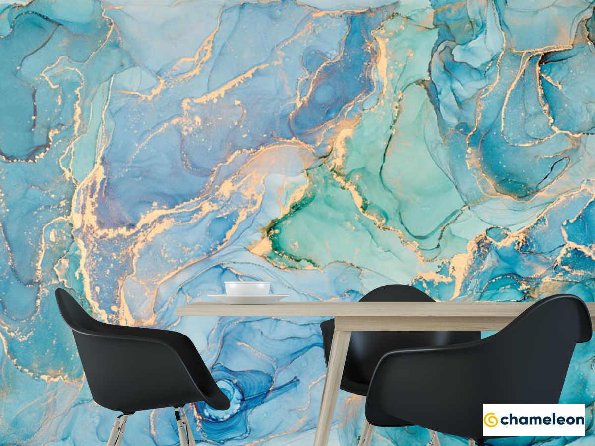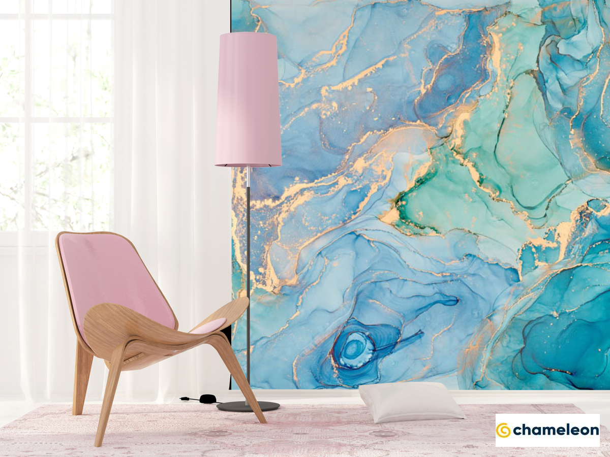 Фотошпалери яскравий блакитний Fluid art