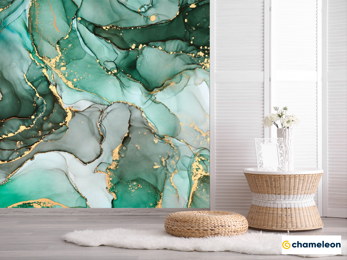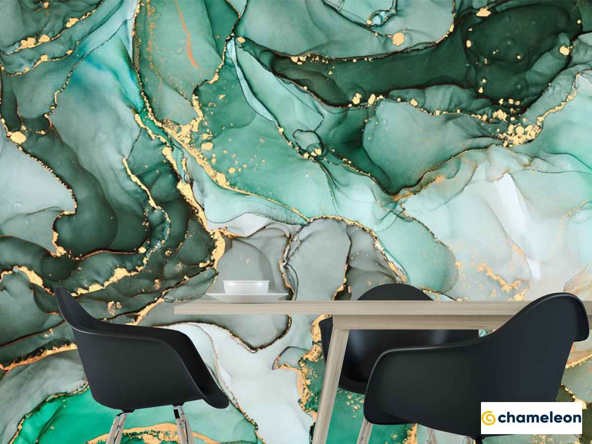 Фотошпалери «Фотошпалери Зелений Fluid art з золотом», (арт. 29341) - купити в інтернет-магазині «Будинок Фотошпалер» Хамелеон
