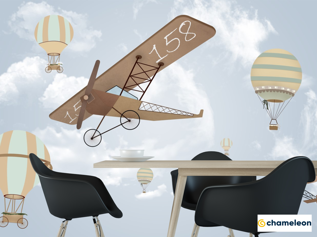 Фотошпалери «Фотошпалери повітряні кулі і літаки», (арт. 29355) - купити в інтернет-магазині «Будинок Фотошпалер» Хамелеон