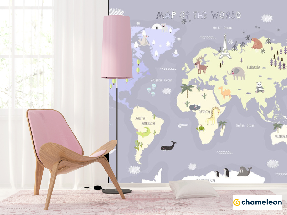 Фотошпалери фіолетова дитяча карта англійською