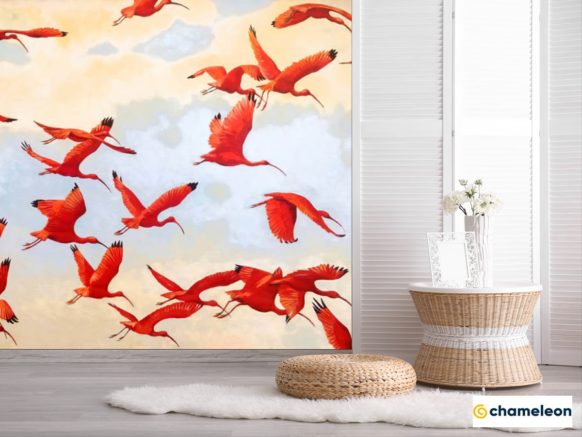 Фотошпалери «Фотошпалери червоні лелеки в небі», (арт. 29985) - купити в інтернет-магазині «Будинок Фотошпалер» Хамелеон