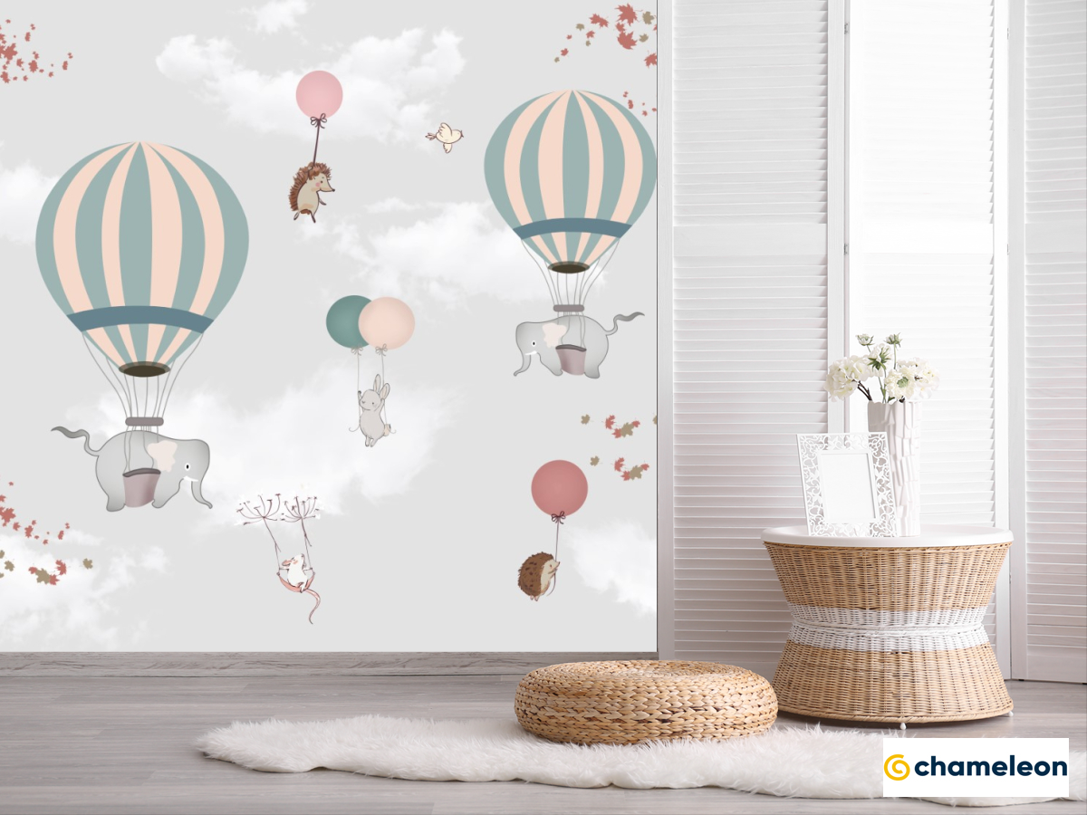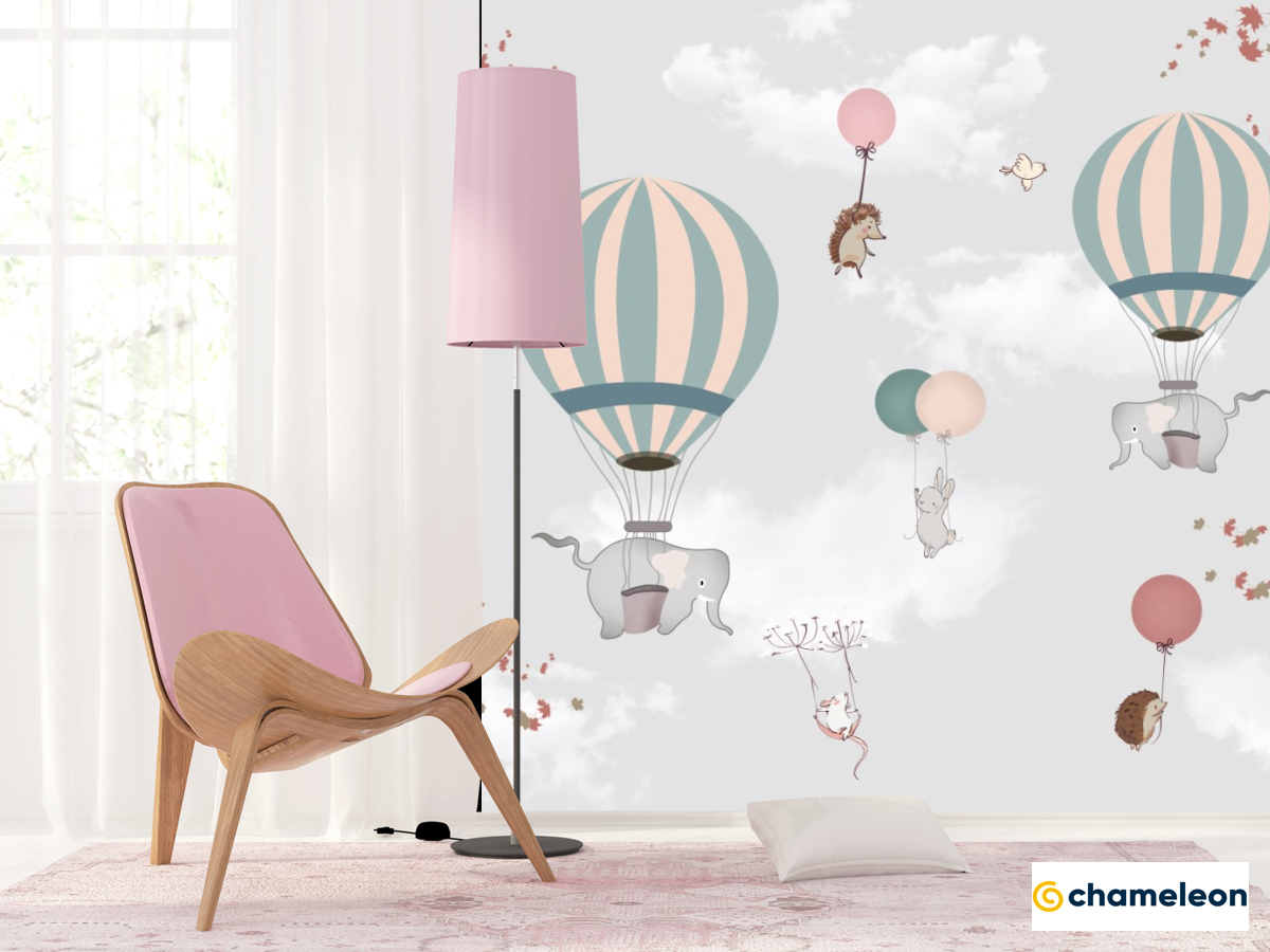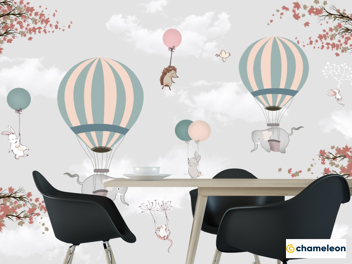 Фотошпалери «Фотошпалери тварини на повітряних кульках», (арт. 30044) - купити в інтернет-магазині «Будинок Фотошпалер» Хамелеон