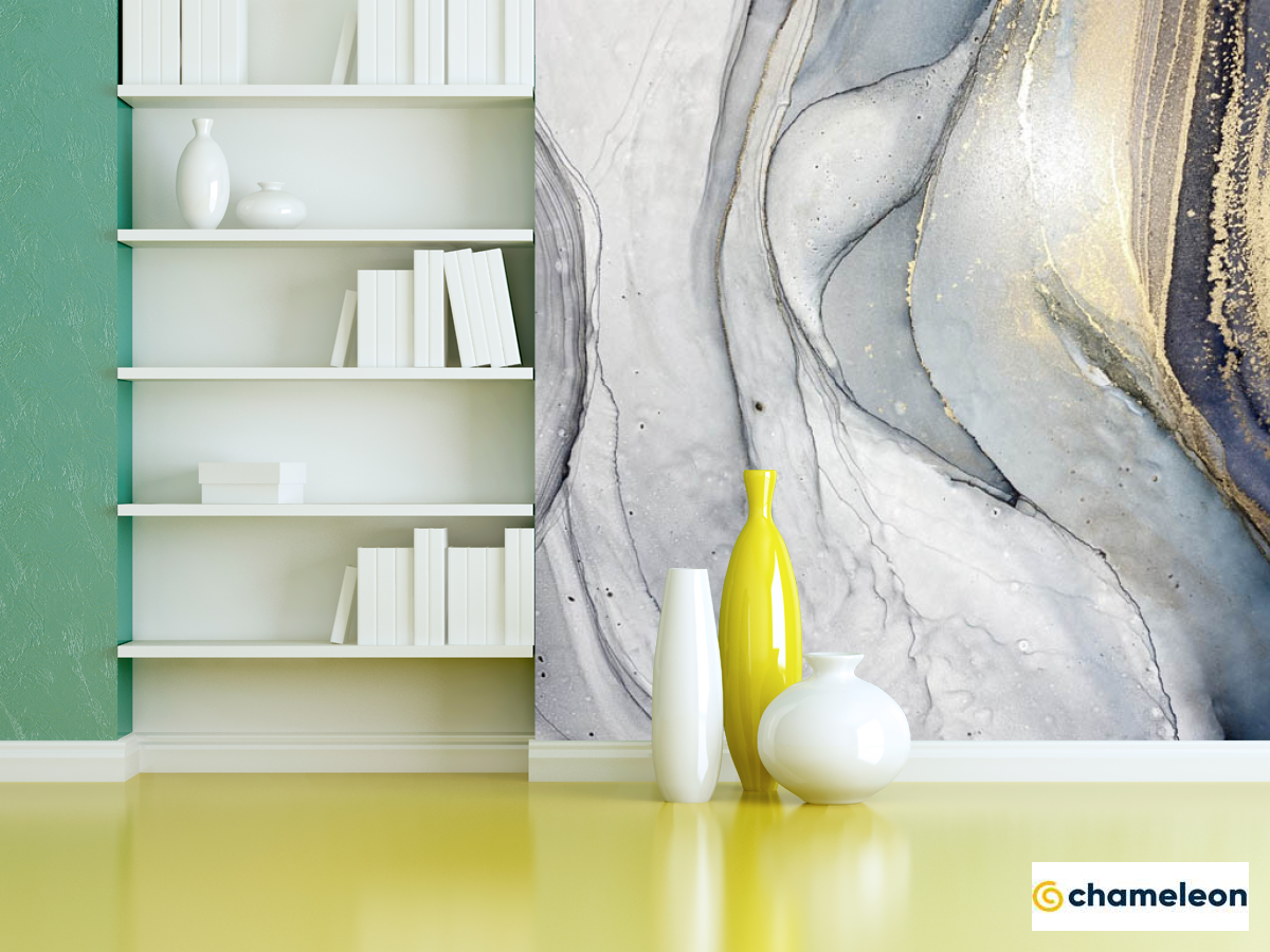 Фотошпалери «Фотошпалери Сірий fluid art з золотом», (арт. 30124) - купити в інтернет-магазині «Будинок Фотошпалер» Хамелеон